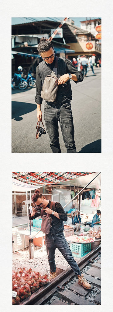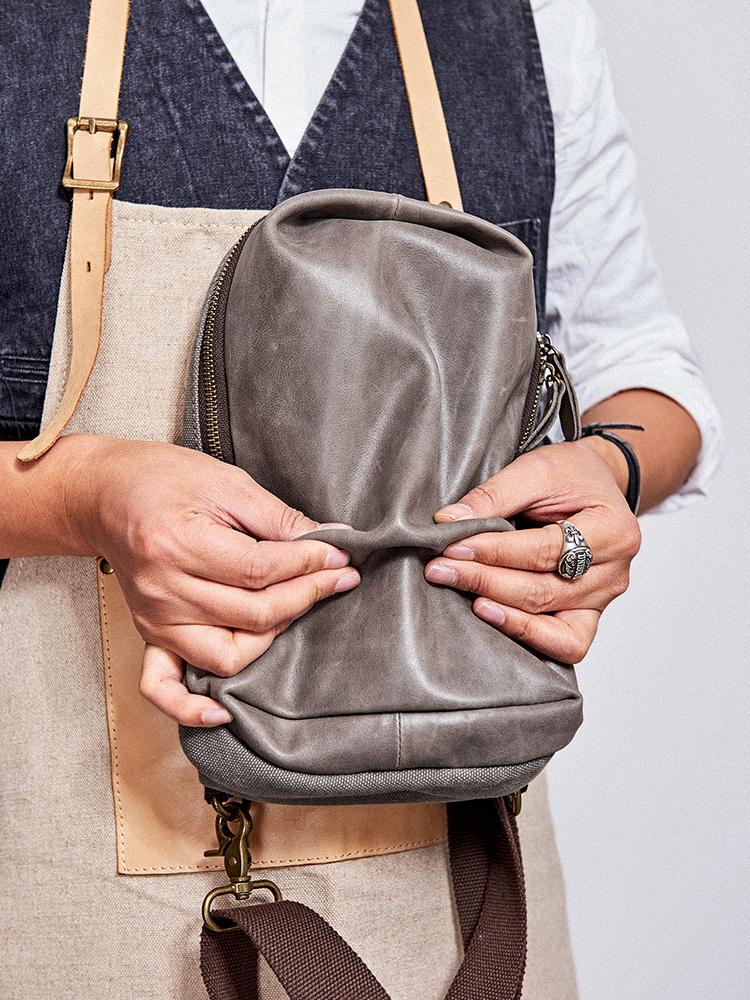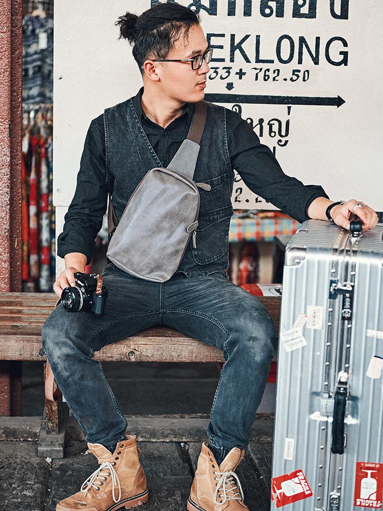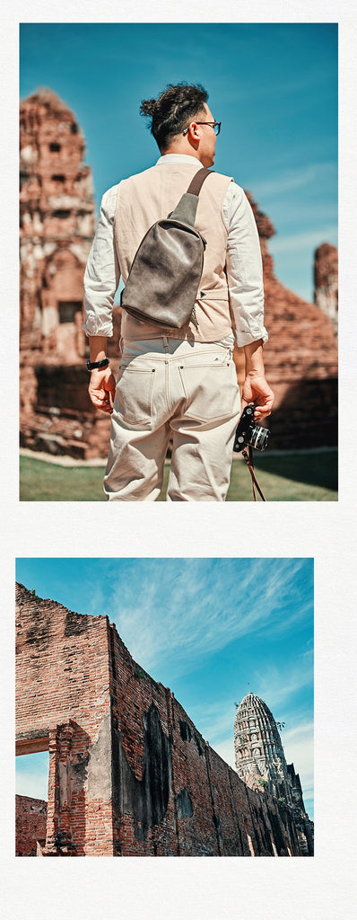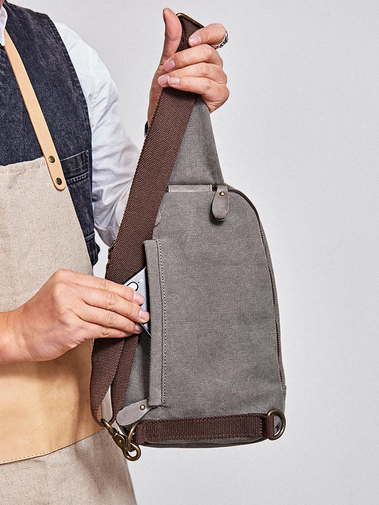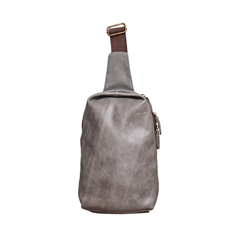 Design: Canvas Leather Mens Gray Sling Backpack Brown Chest Bag Sling Pack Sling Bag For Men