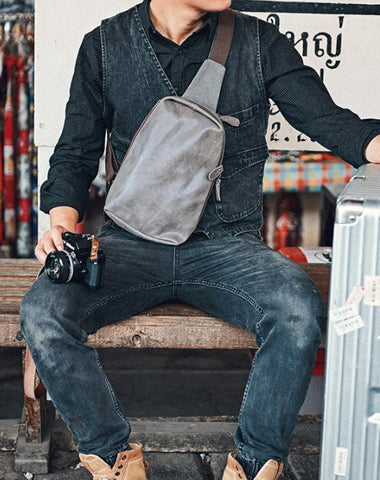 Style: Canvas Leather Mens Gray Sling Backpack Brown Chest Bag Sling Pack Sling Bag For Men
