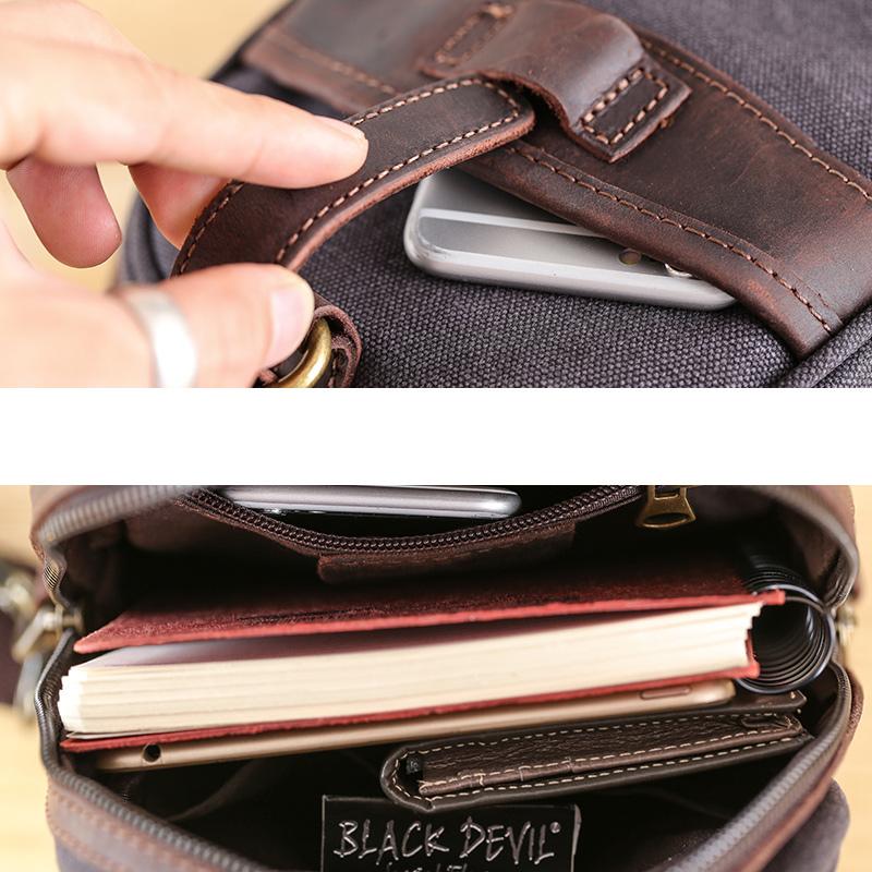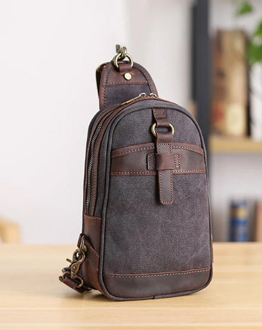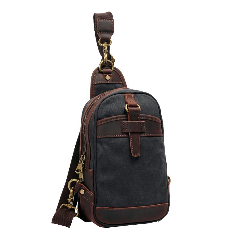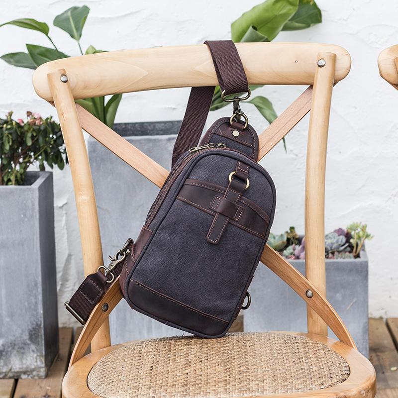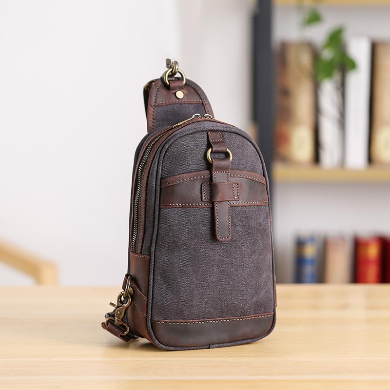 Style: Canvas Leather Mens Green Chest Bag One Shoulder Backpack Gray Sling Bag for Men