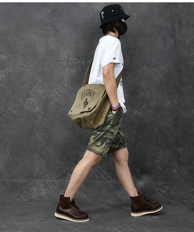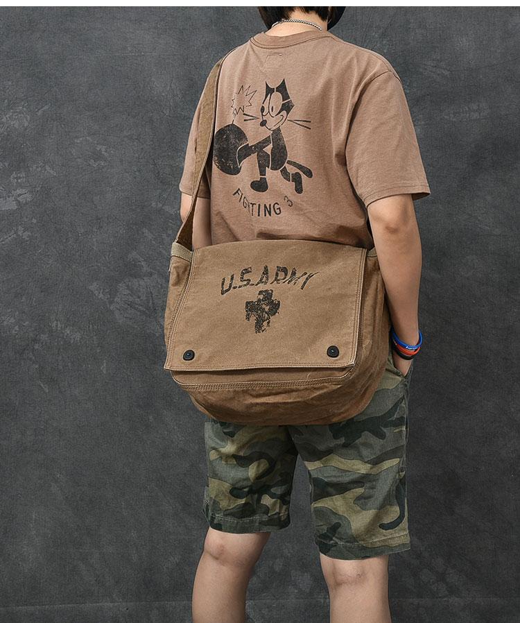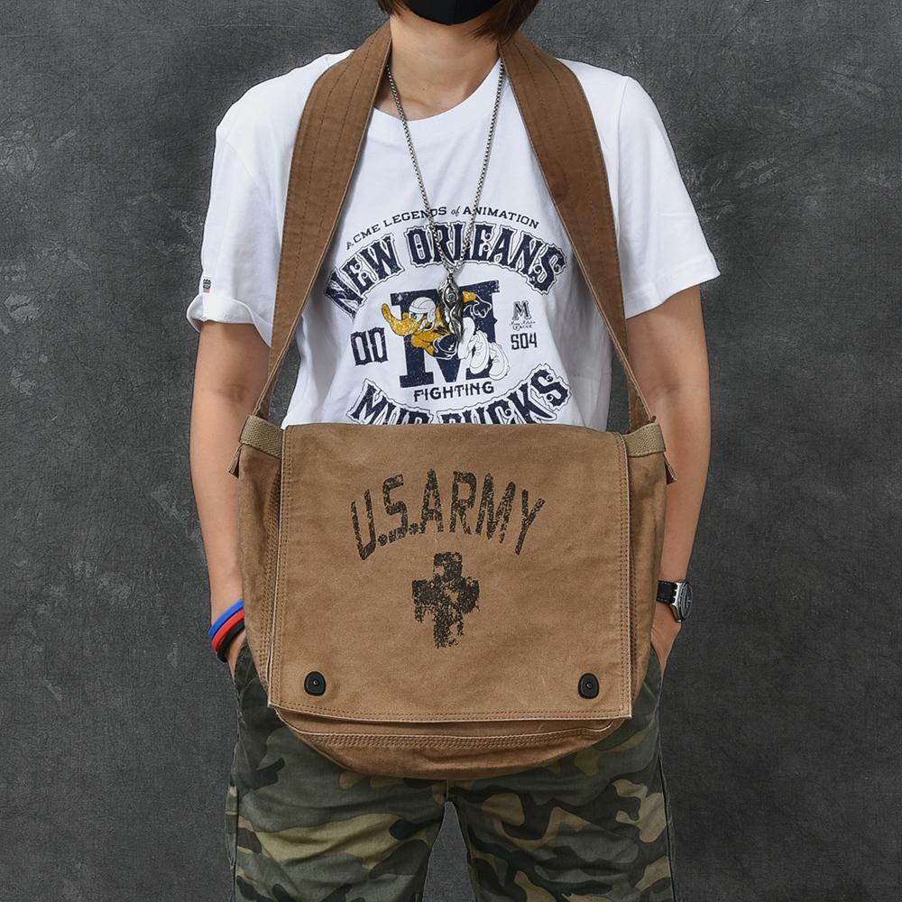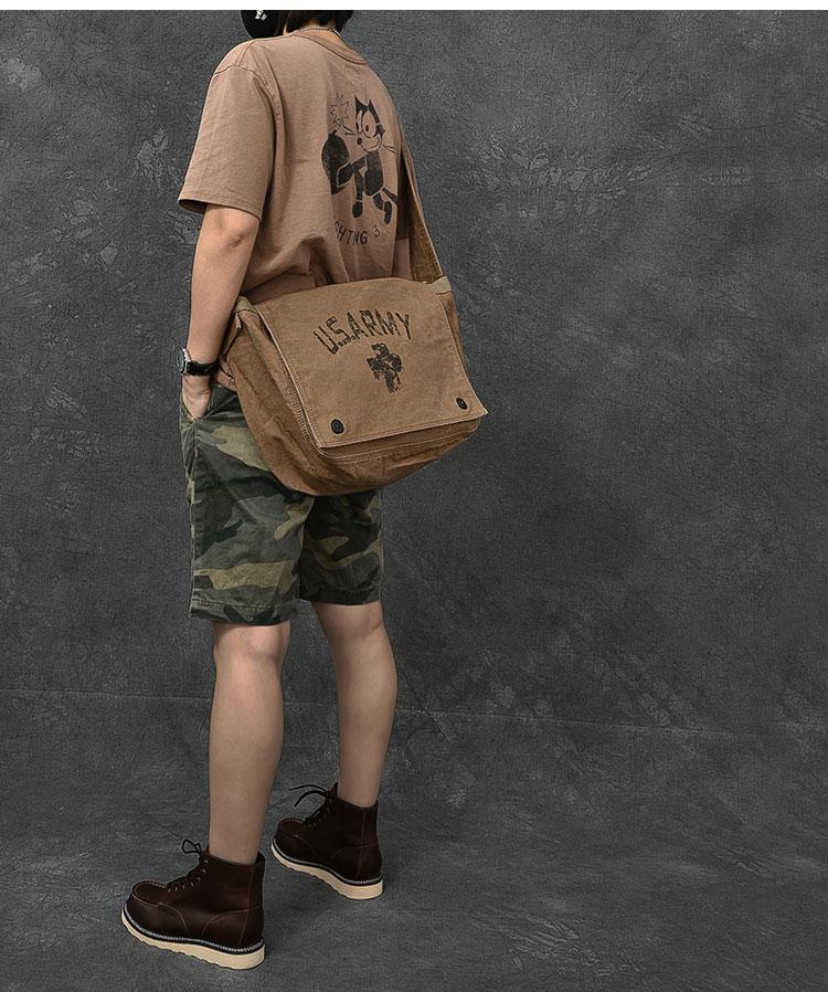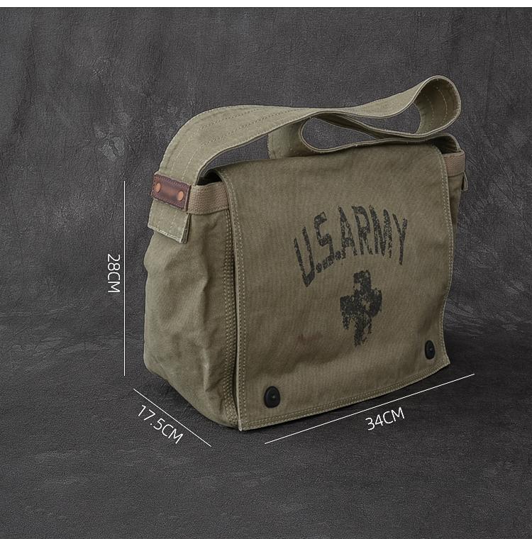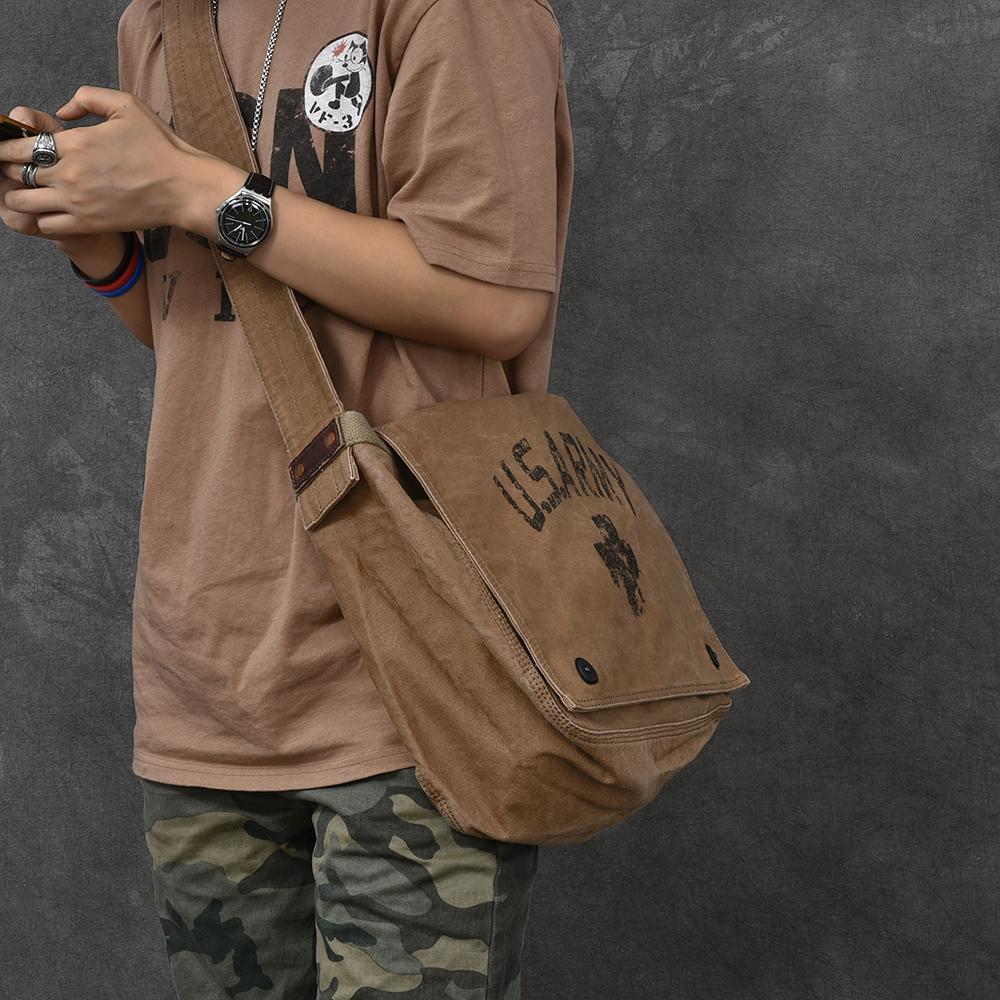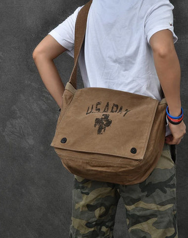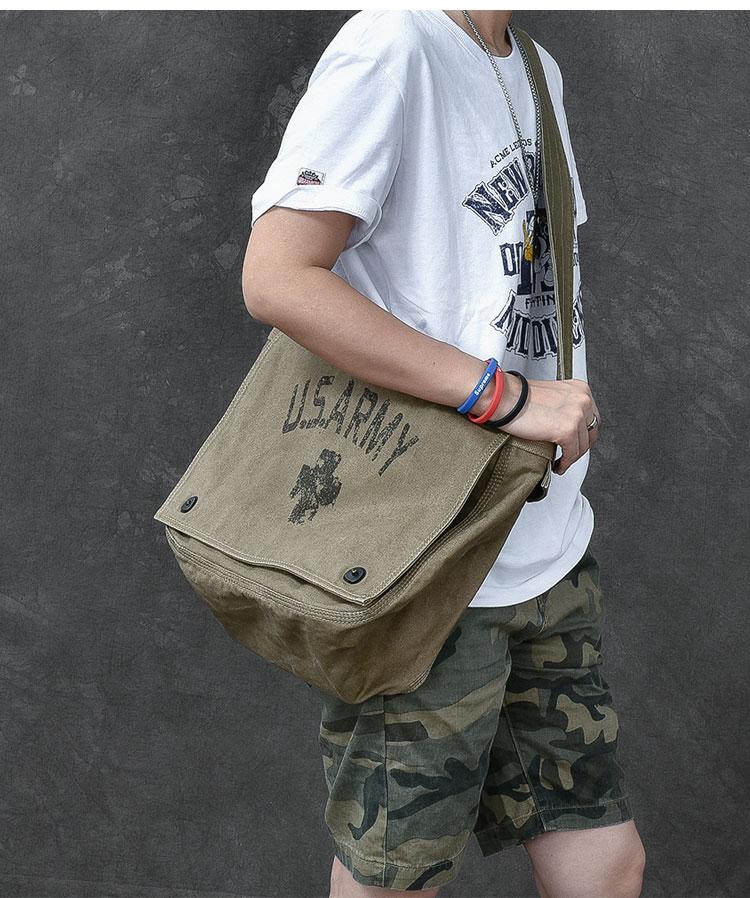 Style: Canvas Leather Mens Large Brown Side Bag 14'' Army Green Messenger Bag Shoulder Bag For Men