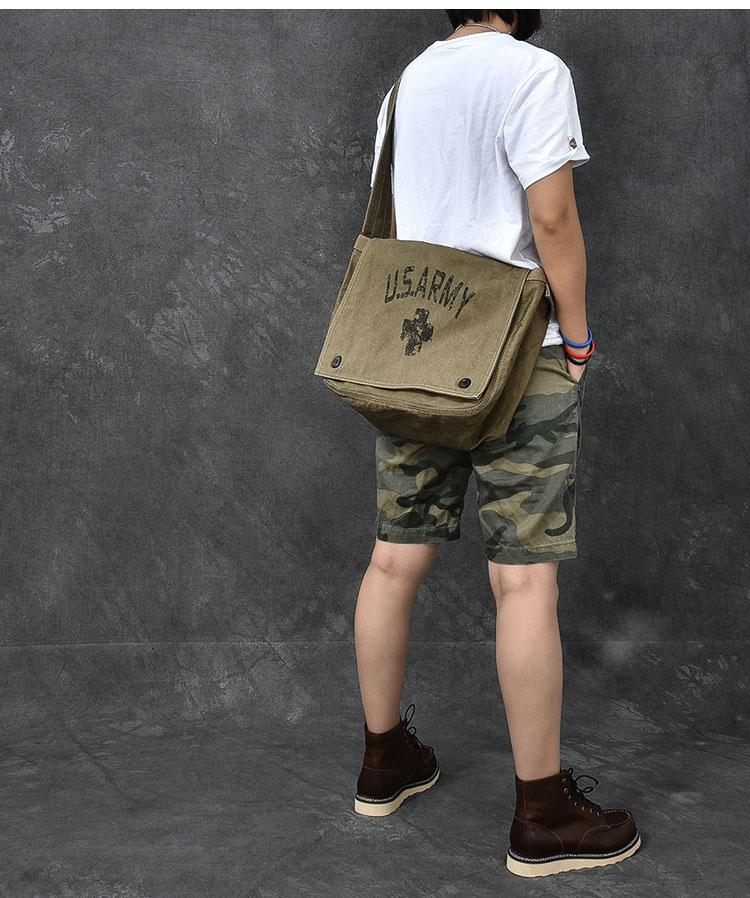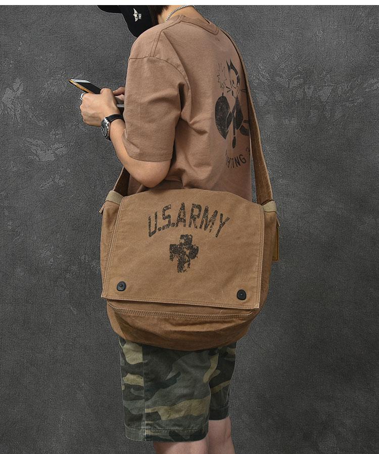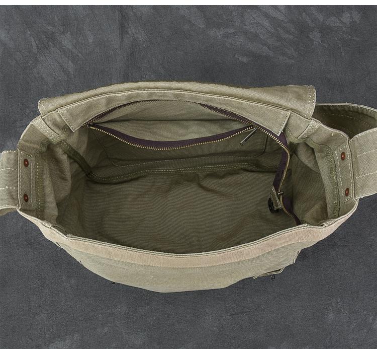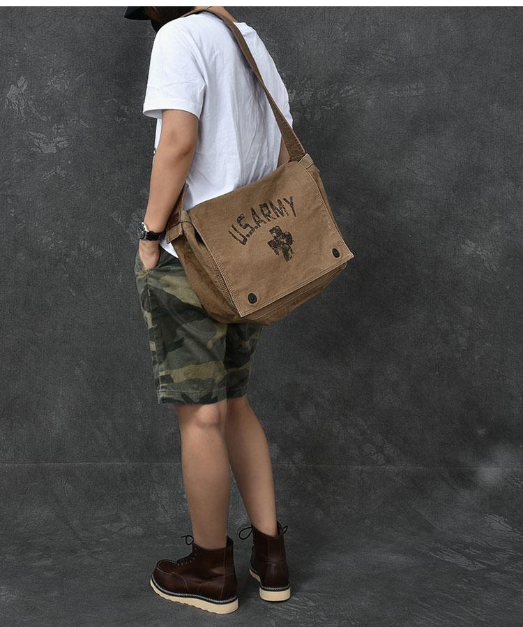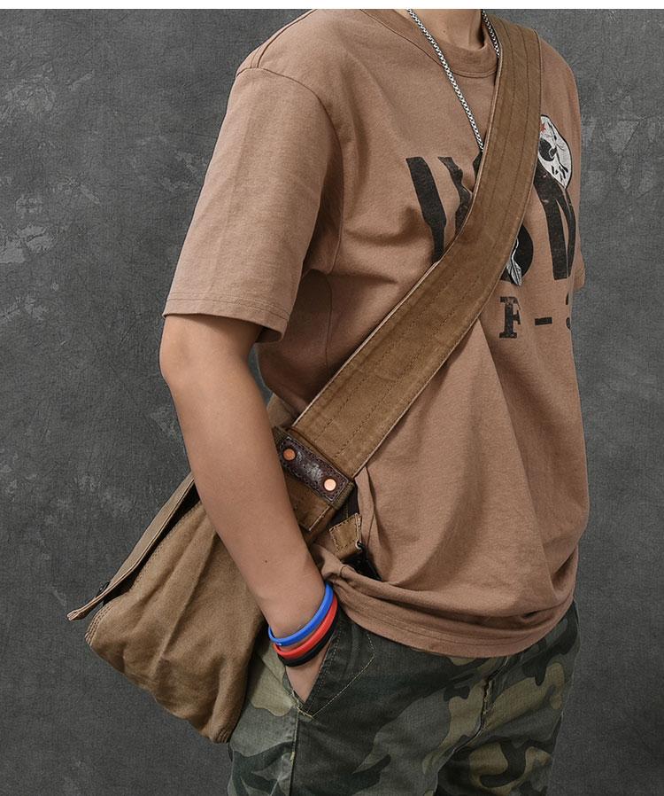Design: Canvas Leather Mens Large Brown Side Bag 14'' Army Green Messenger Bag Shoulder Bag For Men
