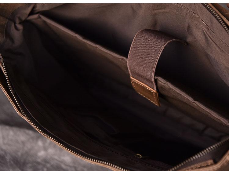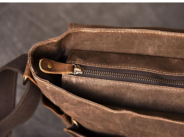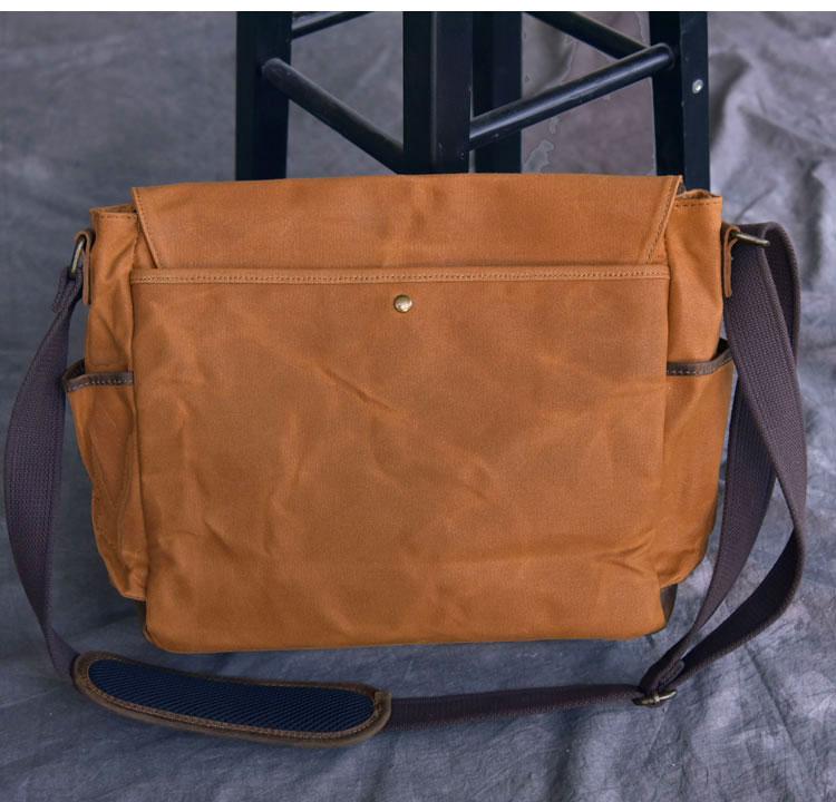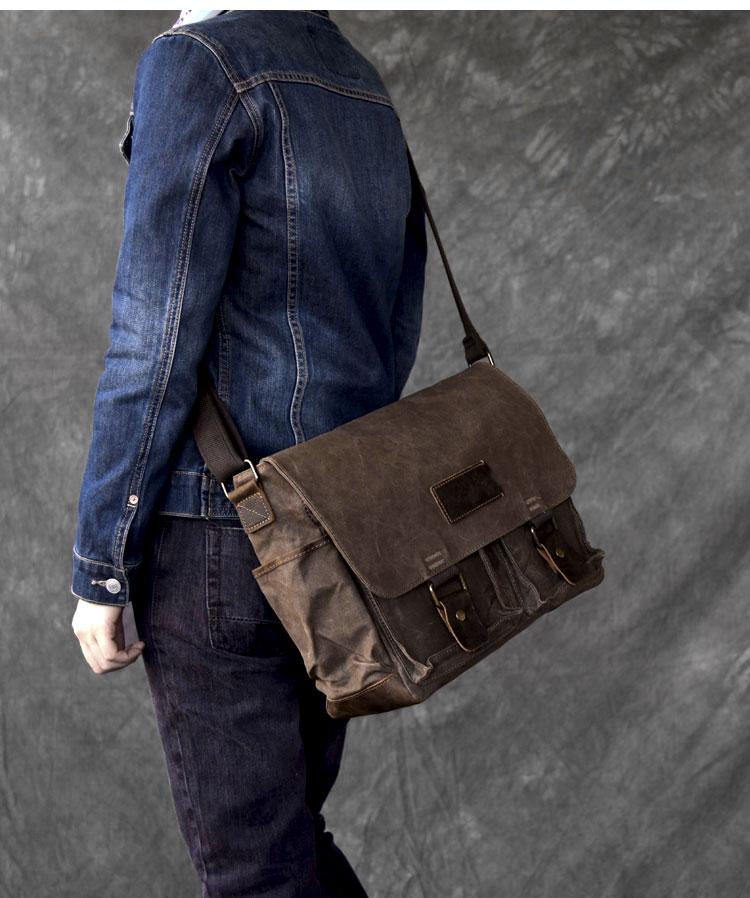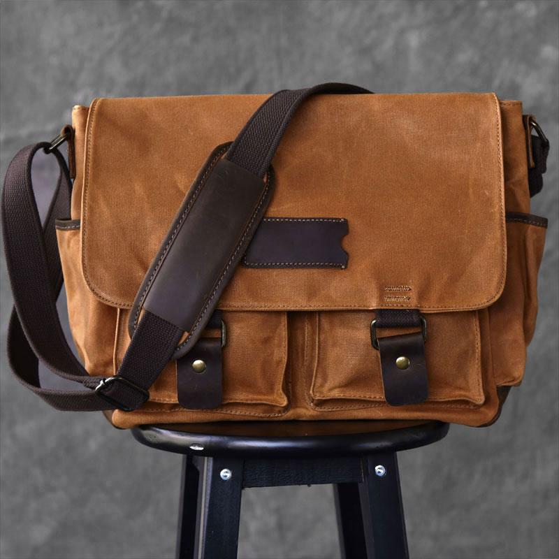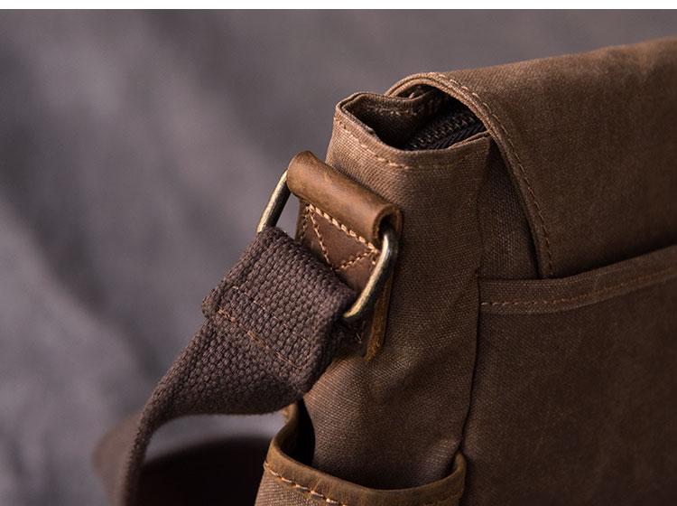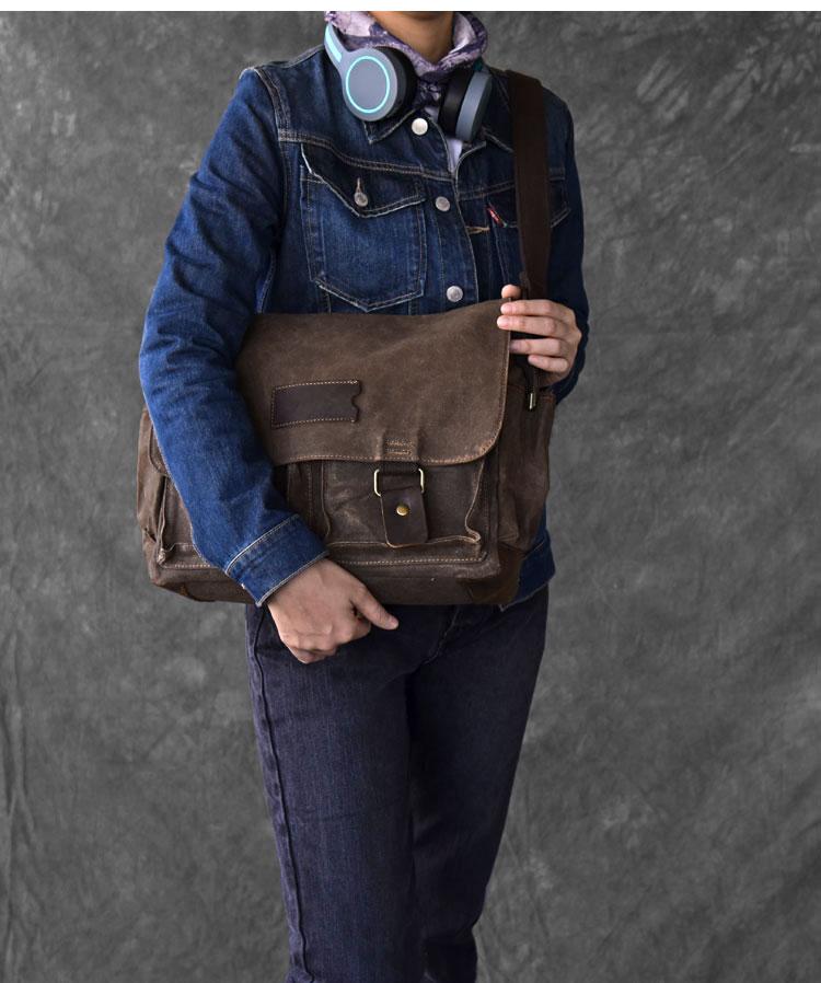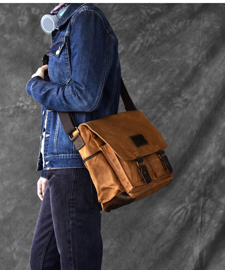 Design: Canvas Leather Mens Large Brown Side Bag 14'' Khaki Messenger Bag Brown Postman Bag For Men