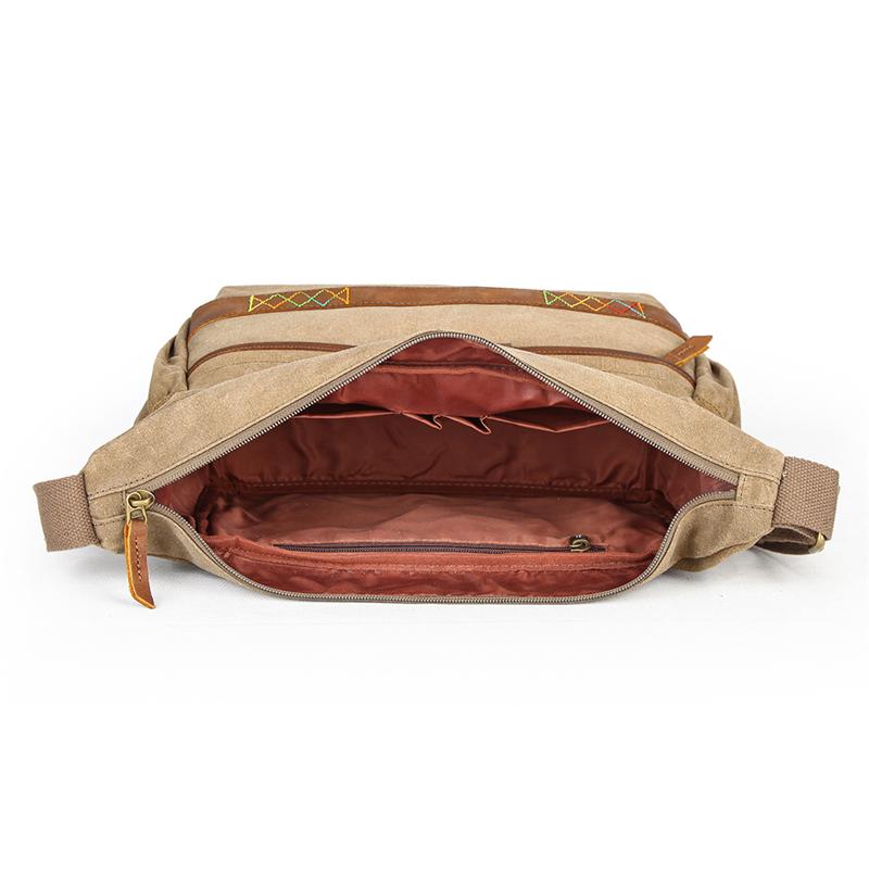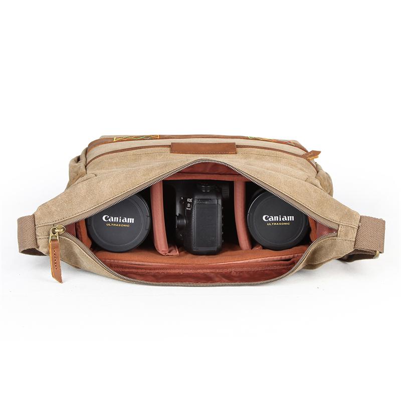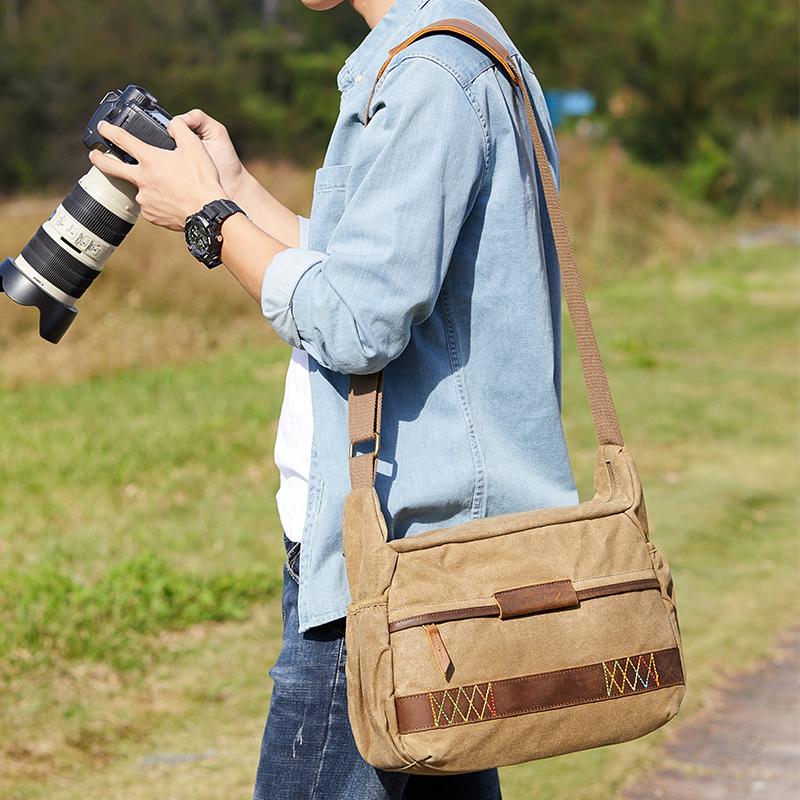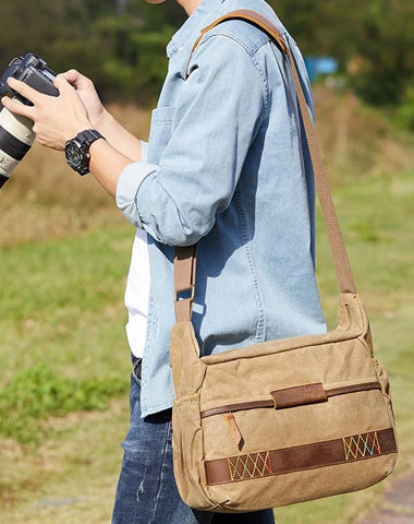 Style: Canvas Leather Mens Multi-function Khaki Camera Bag Shoulder Bag Army Green Diagonal Bag for Men