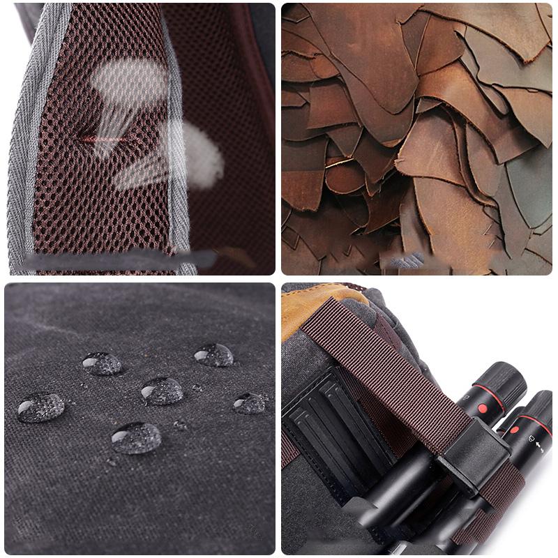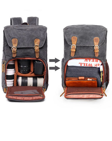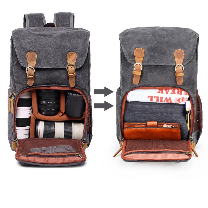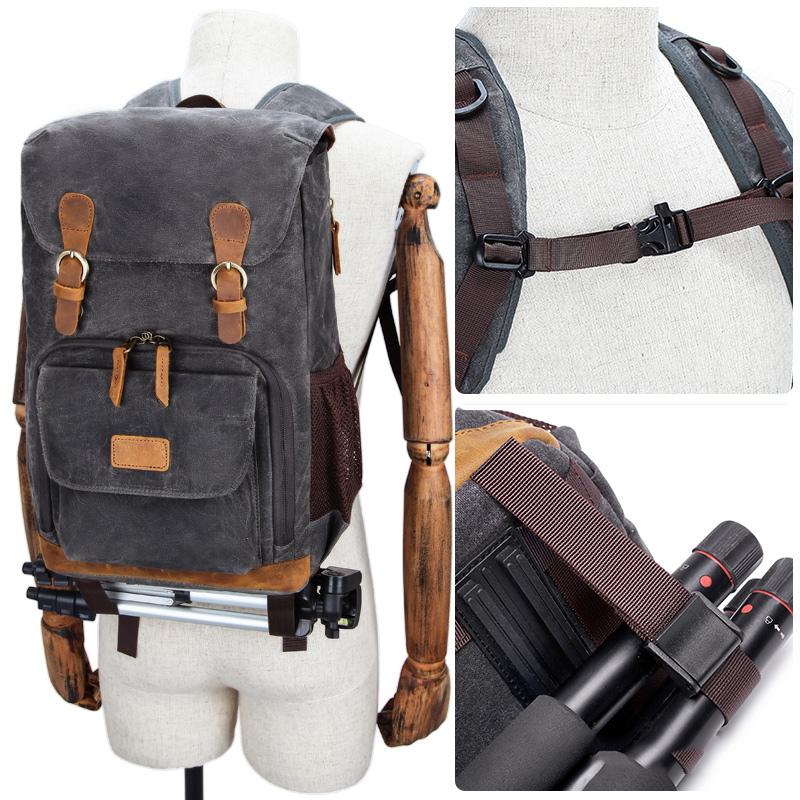 Design: Canvas Leather Mens Waterproof Camera Backpack Dark Gray Travel Backpack Khaki College Backpack for Men
