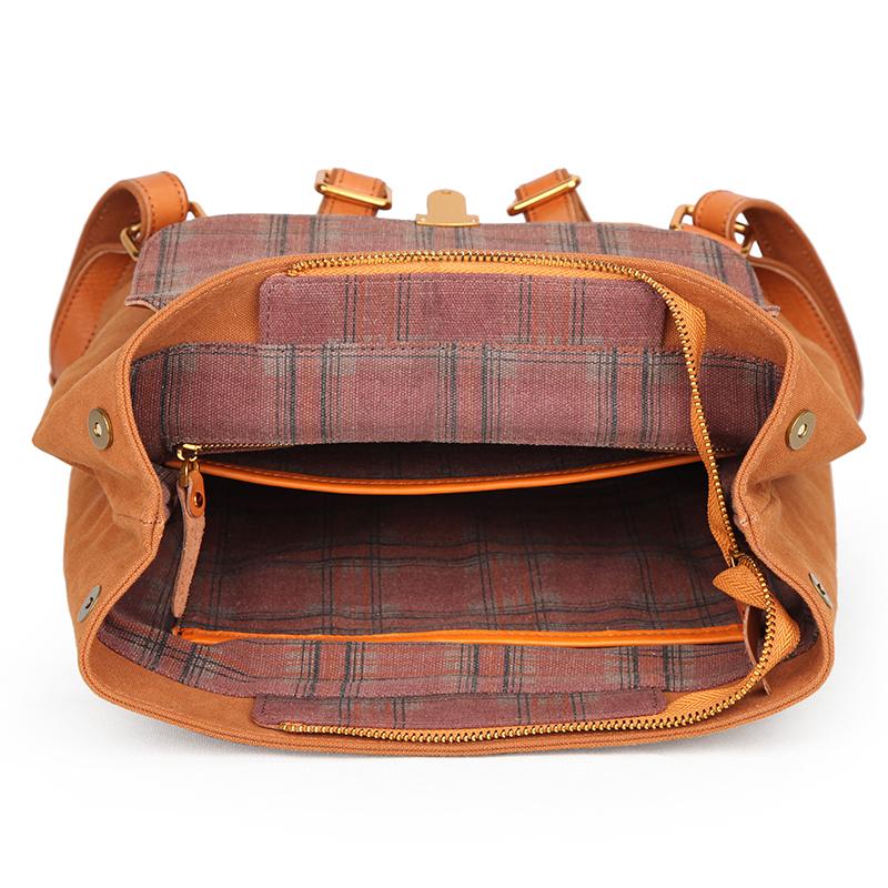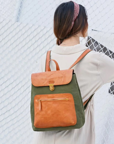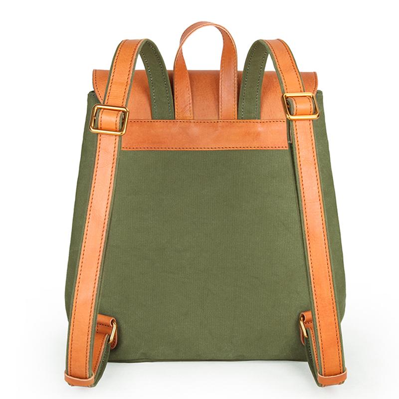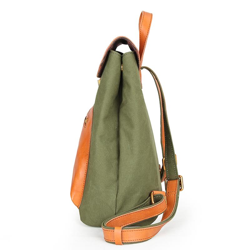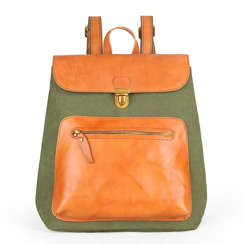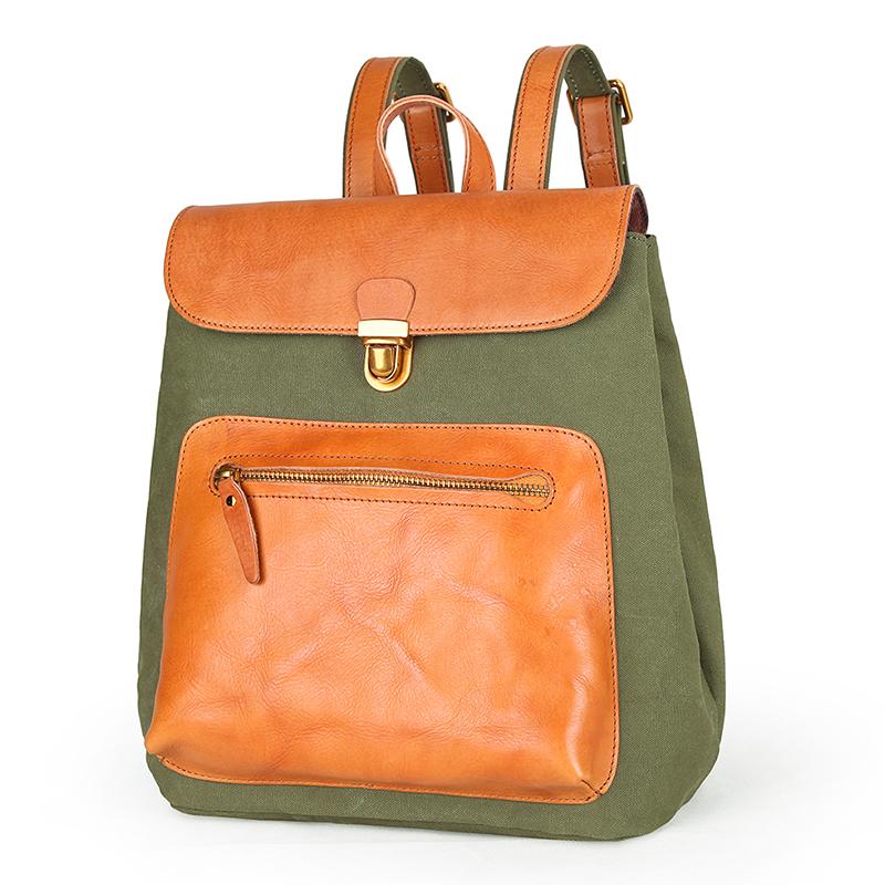 Style: Canvas Leather Mens Women 8" Student Backpack Army Green Travel Backpack Caramel College Backpack for Men