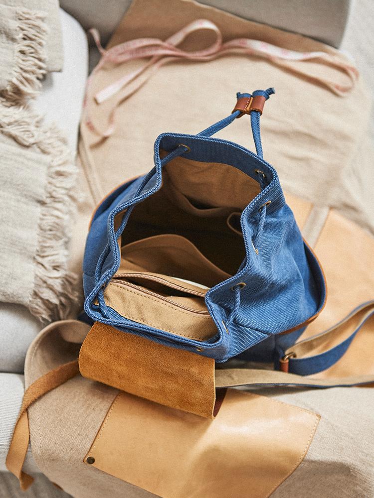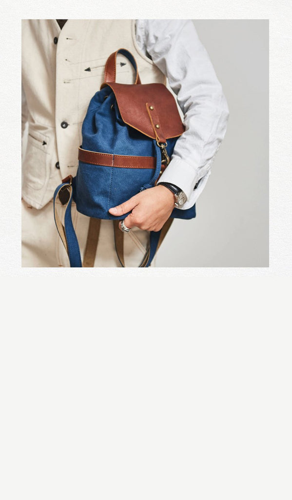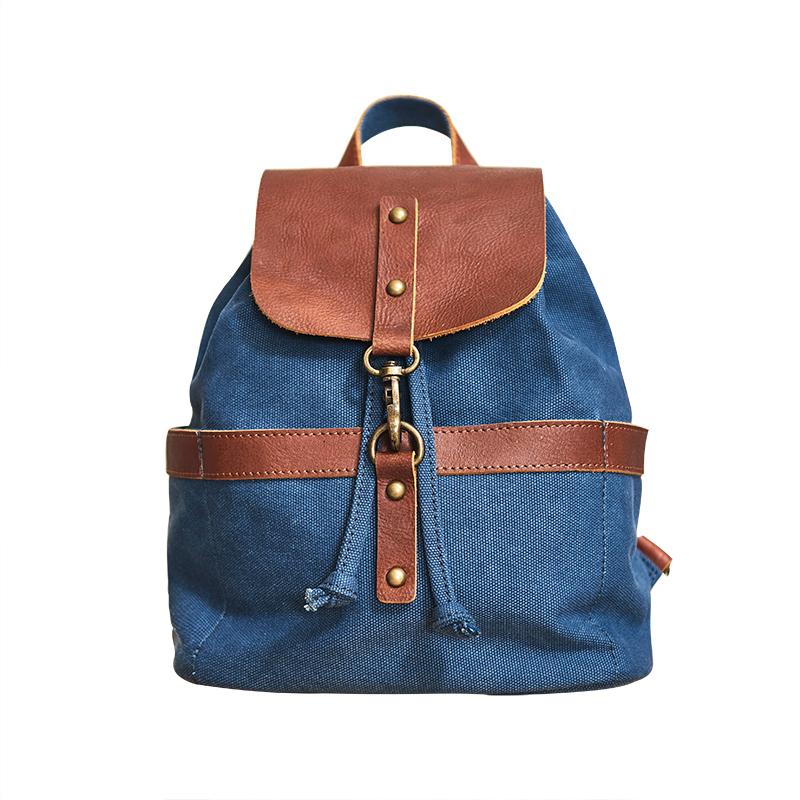 Design: Canvas Leather Mens Womens Backpack Travel Backpack Blue Satchel Rucksack Canvas School Backpack for Men Women