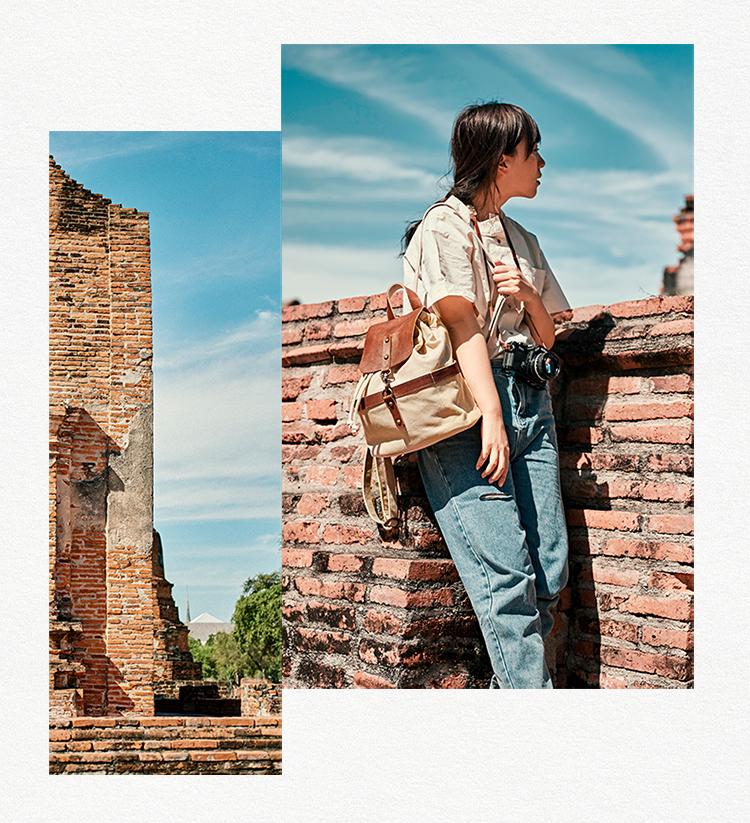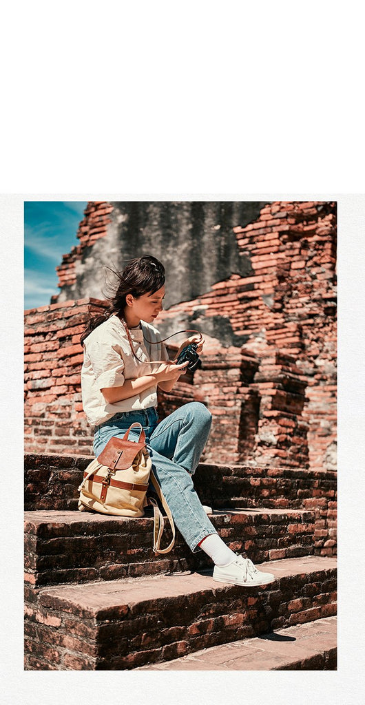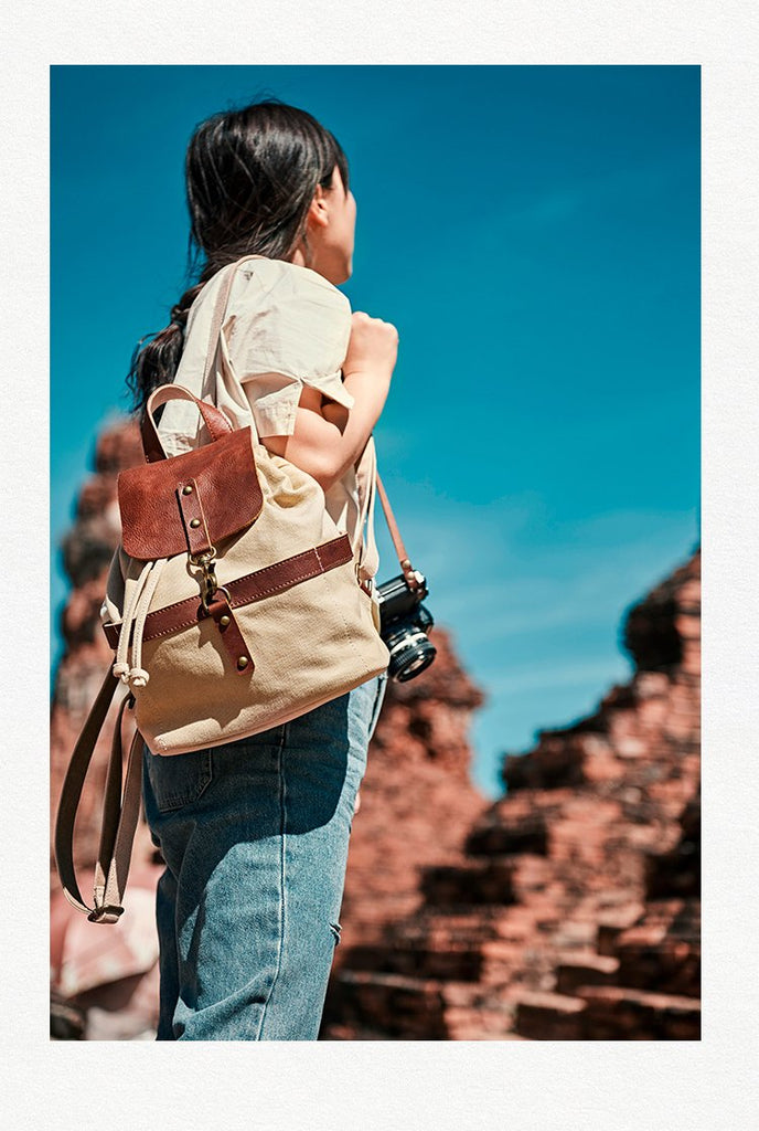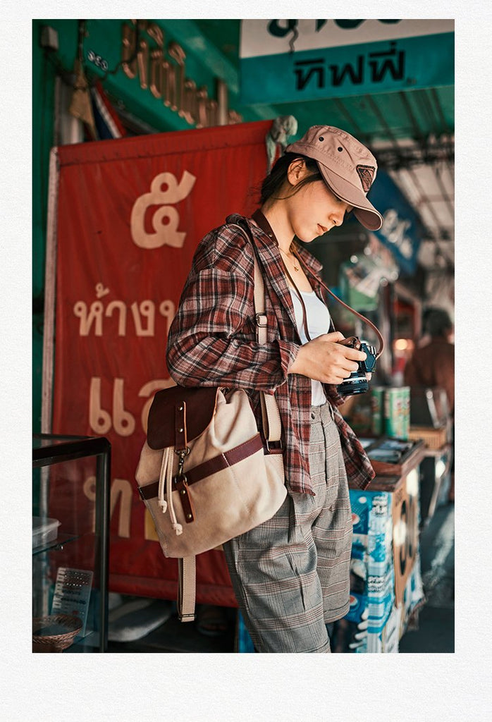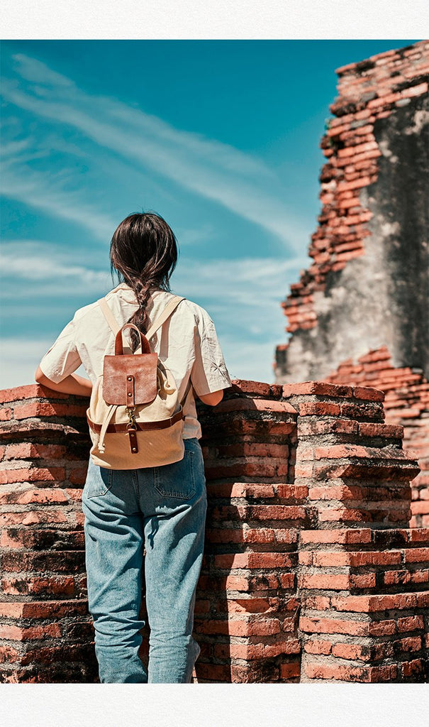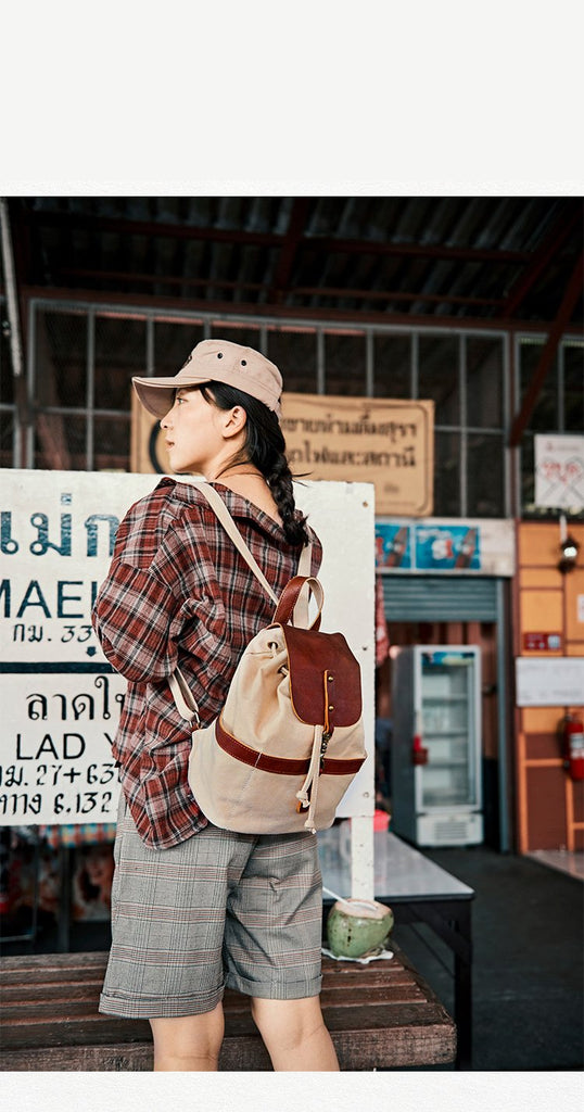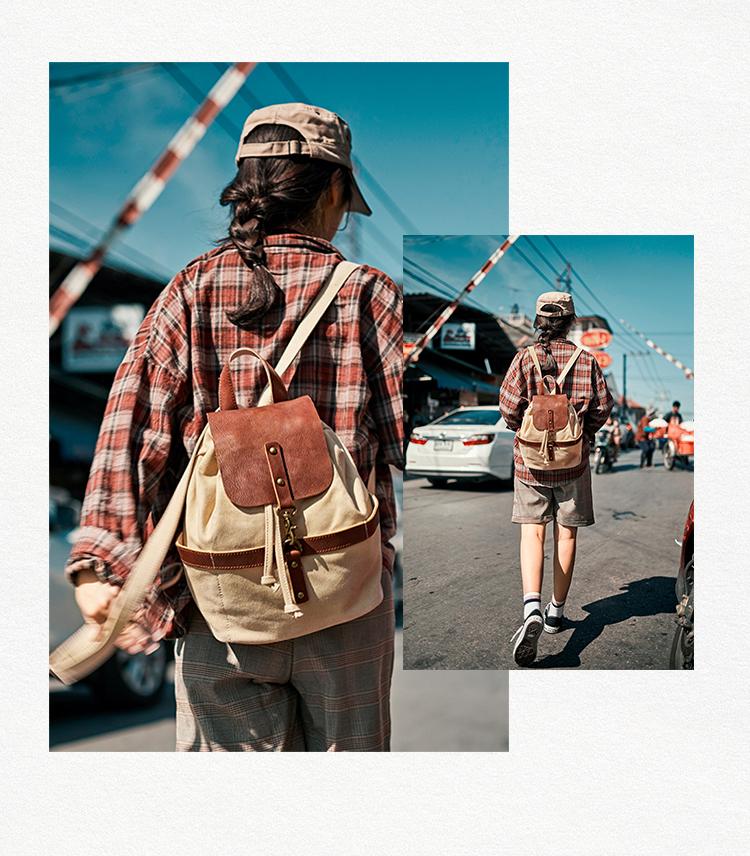 Style: Canvas Leather Mens Womens 10 inches Backpack Messenger Backpack Satchel Bag Canvas School Backpack for Men Women