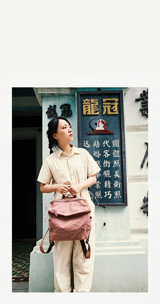 Style: Pink Canvas Mens Womens Cube Rucksack Satchel Backpack Canvas School Backpack for Men Women
