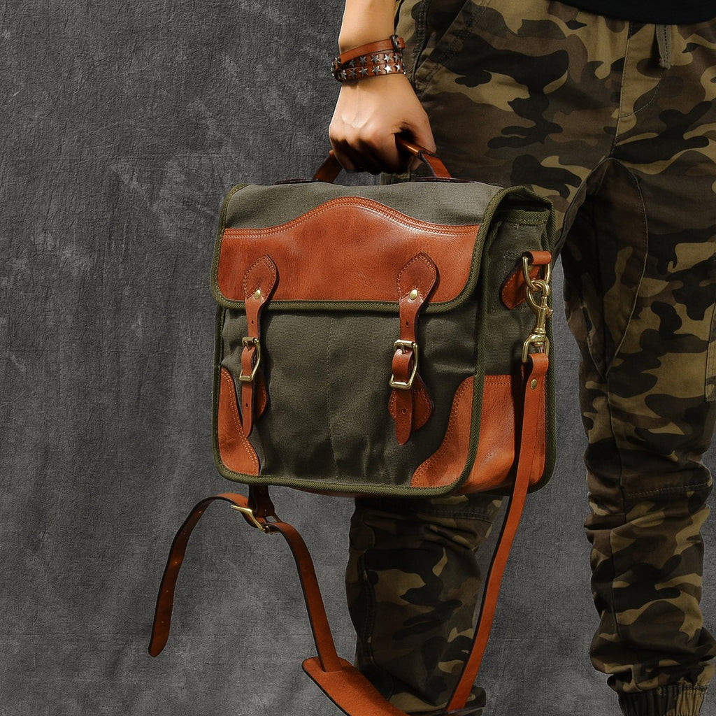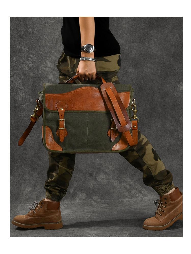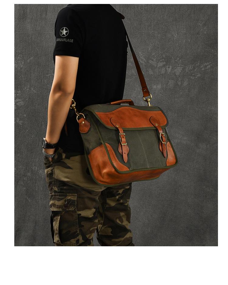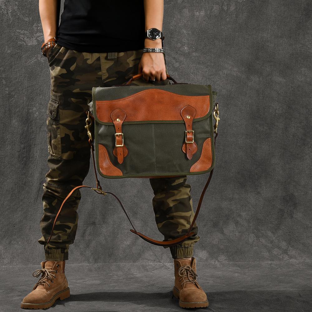 Style: Canvas Leather Mens Womens Army Green Briefcase Side Bag Retro Messenger Bag Shoulder Bag For Men