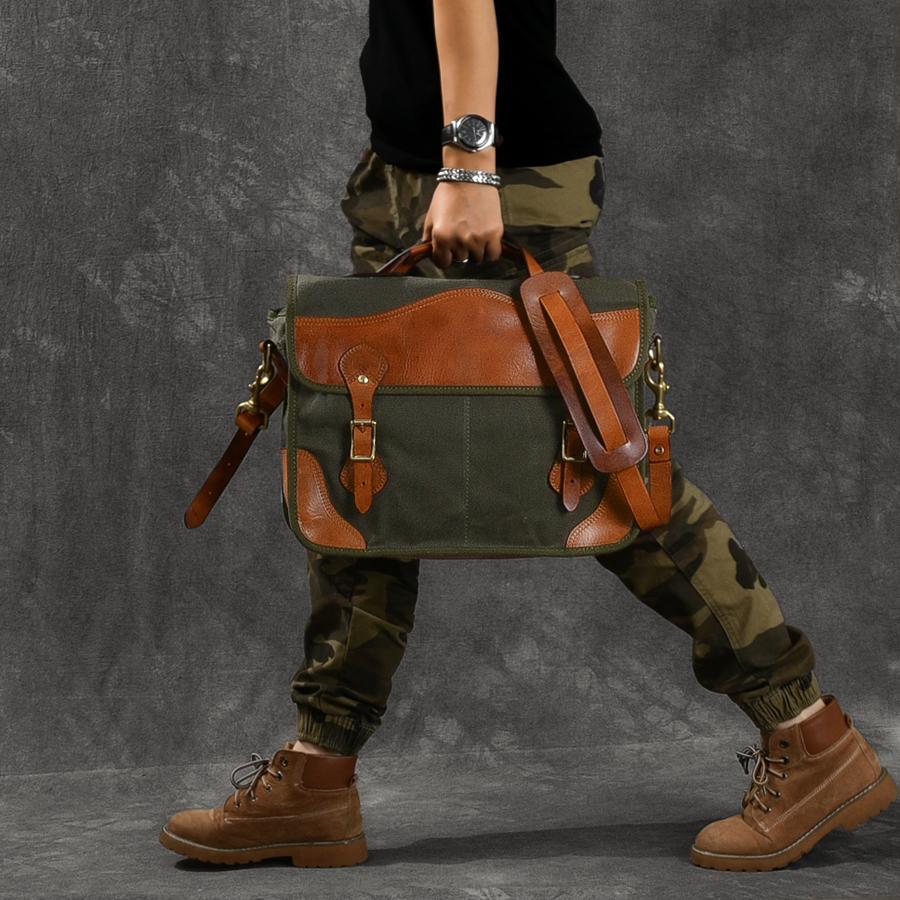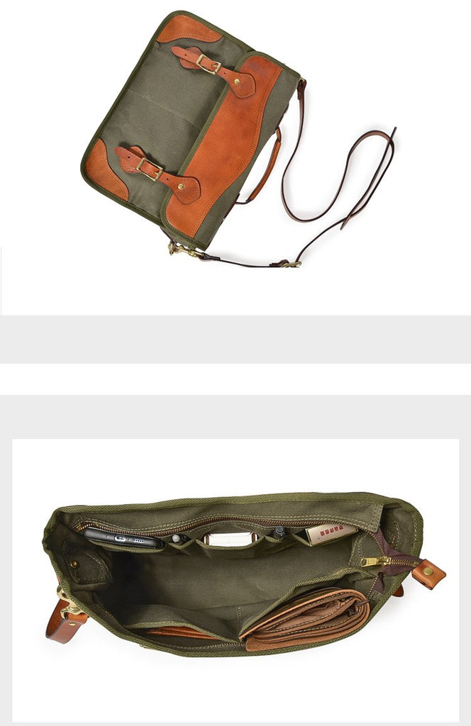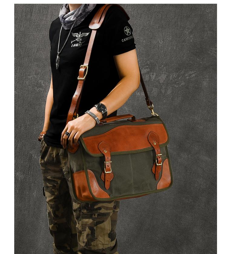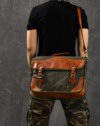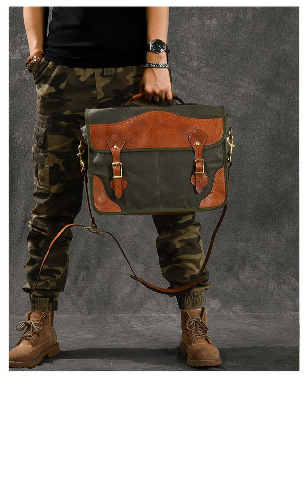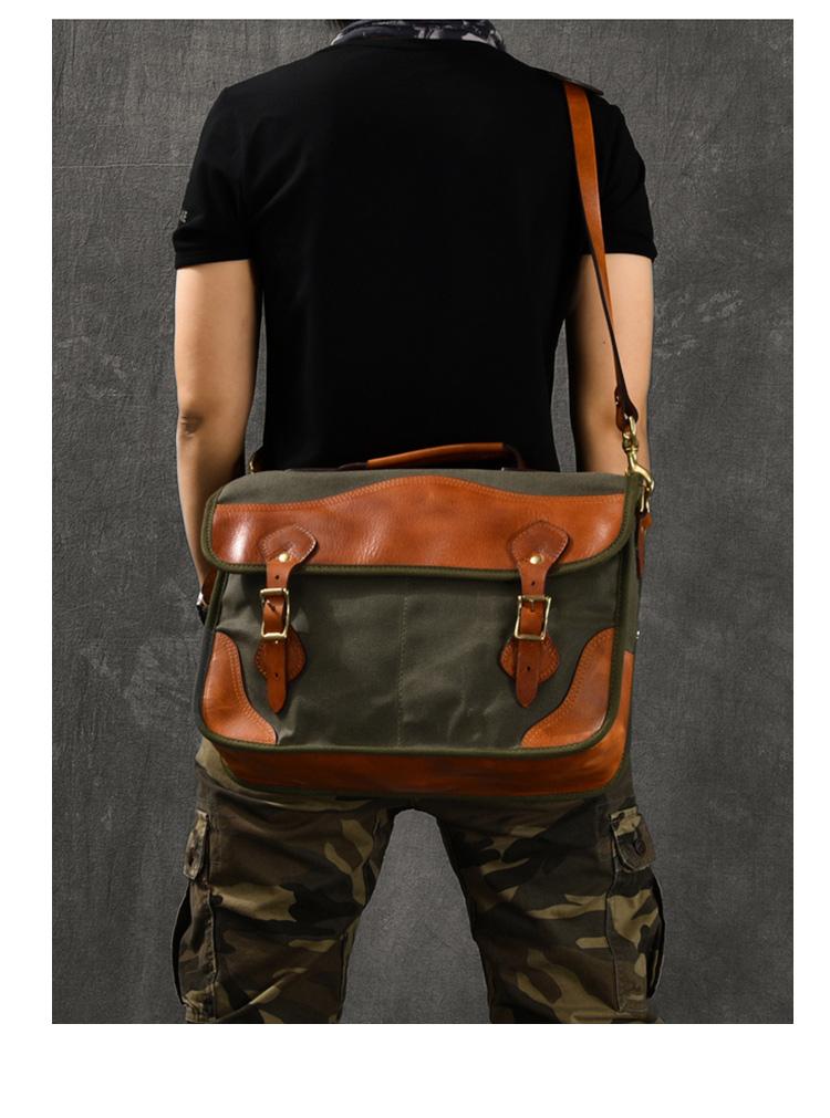 Style: Canvas Leather Mens Womens Army Green Briefcase Side Bag Retro Messenger Bag Shoulder Bag For Men