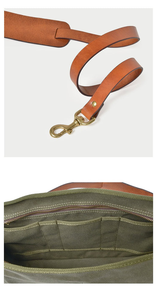 Design: Canvas Leather Mens Womens Army Green Briefcase Side Bag Retro Messenger Bag Shoulder Bag For Men