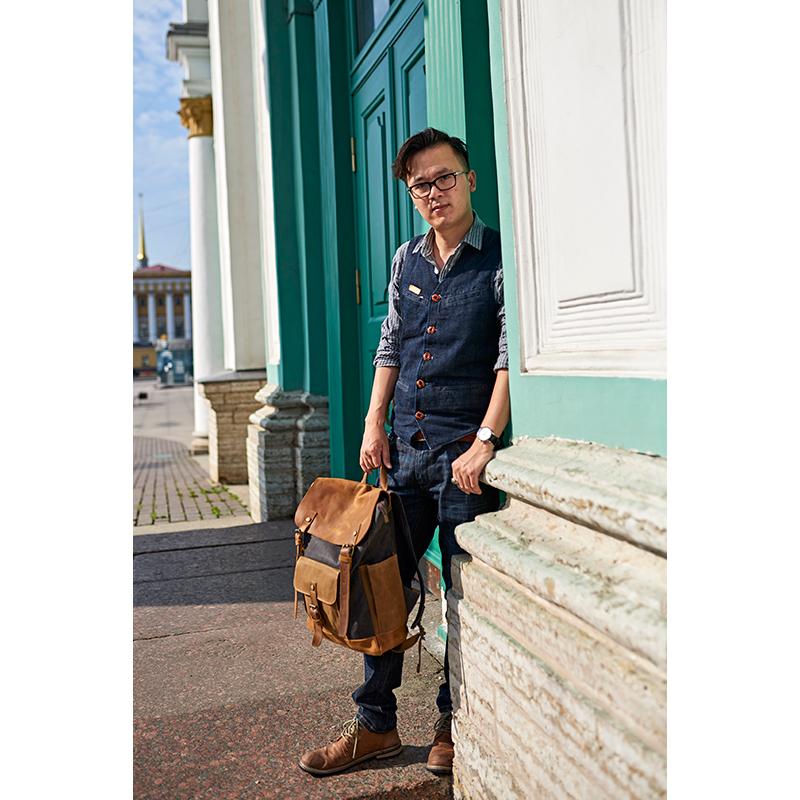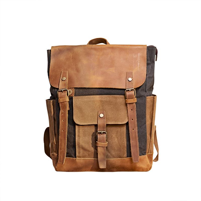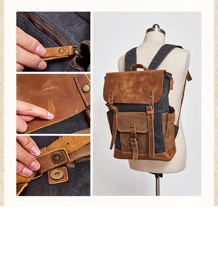 Design: Canvas Leather Mens Womens Backpack 15 inches Gray Messenger Backpack Satchel Bag Canvas School Backpack for Men Women