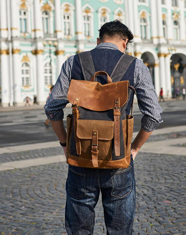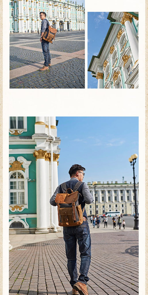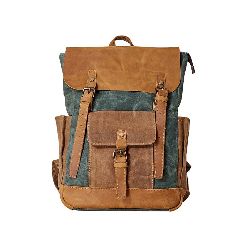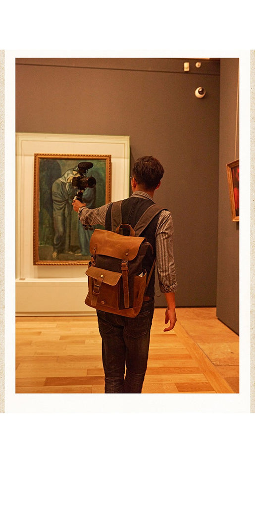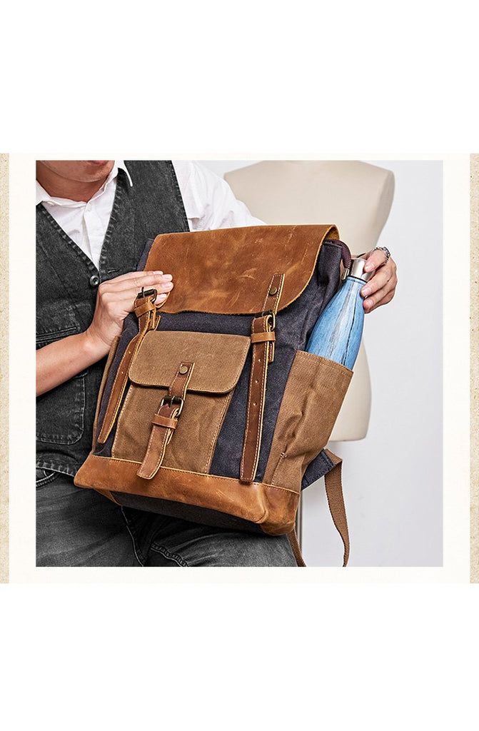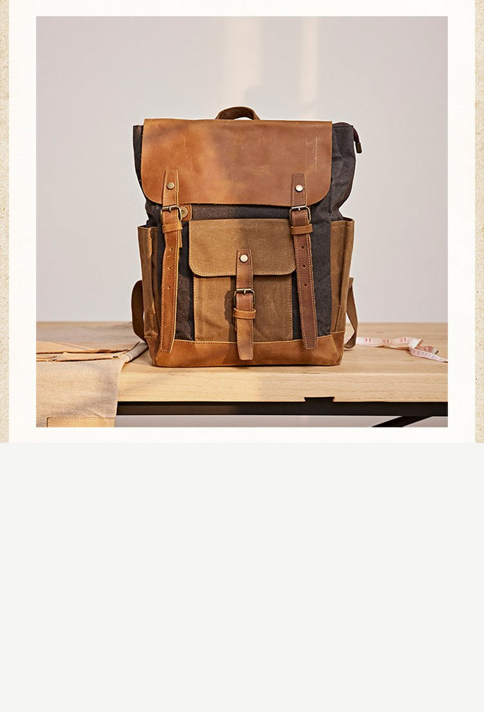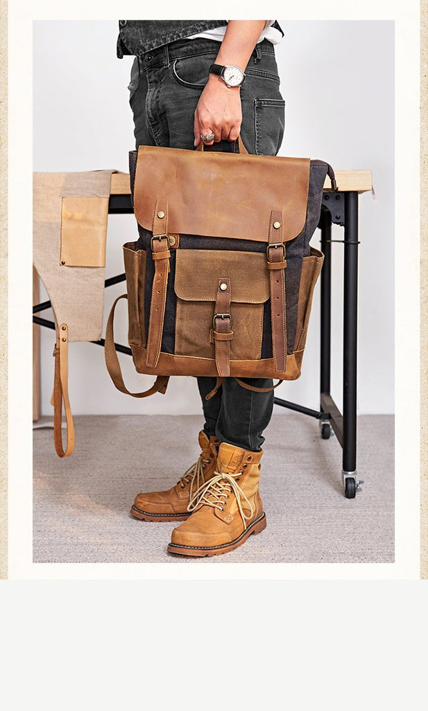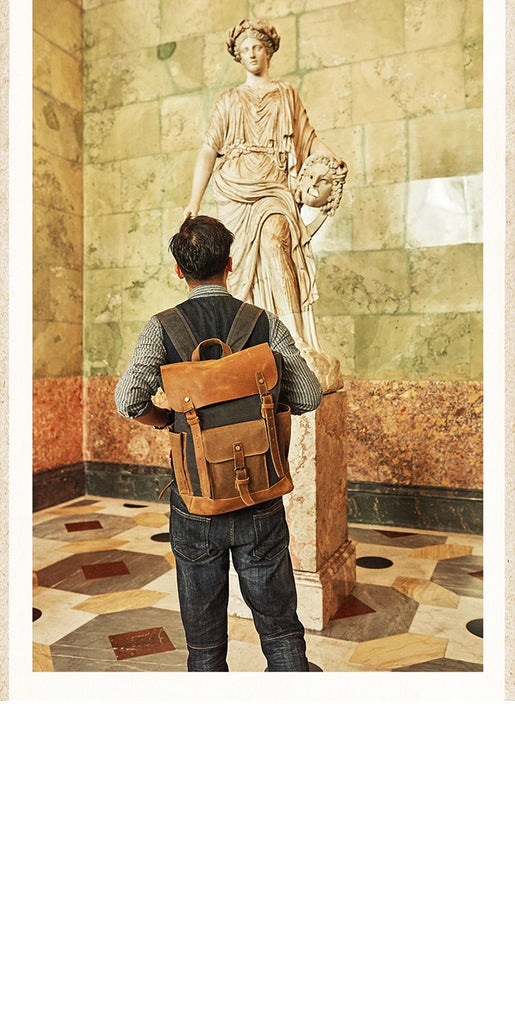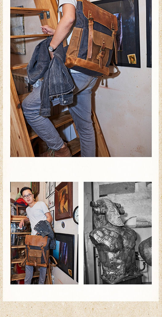 Style: Canvas Leather Mens Womens Backpack 15 inches Gray Messenger Backpack Satchel Bag Canvas School Backpack for Men Women