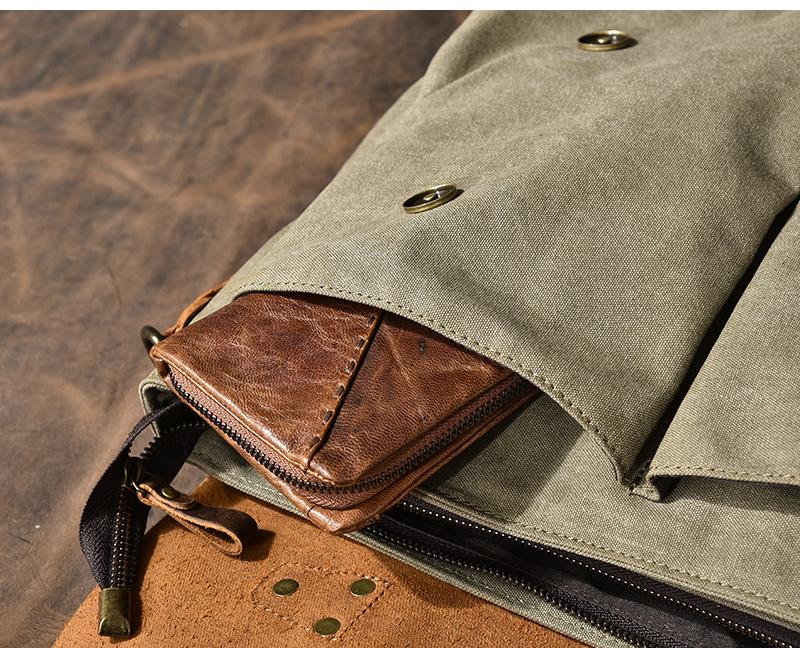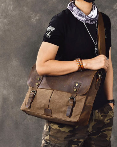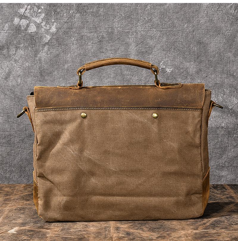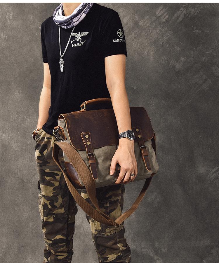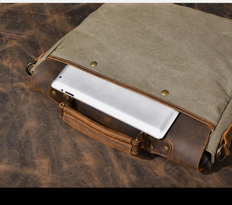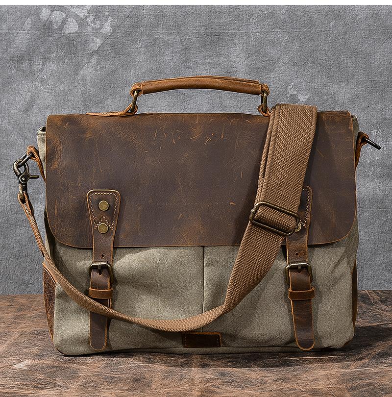 Design: Canvas Leather Mens Womens Green Briefcase Side Bag Brown Messenger Bag Shoulder Bag For Men