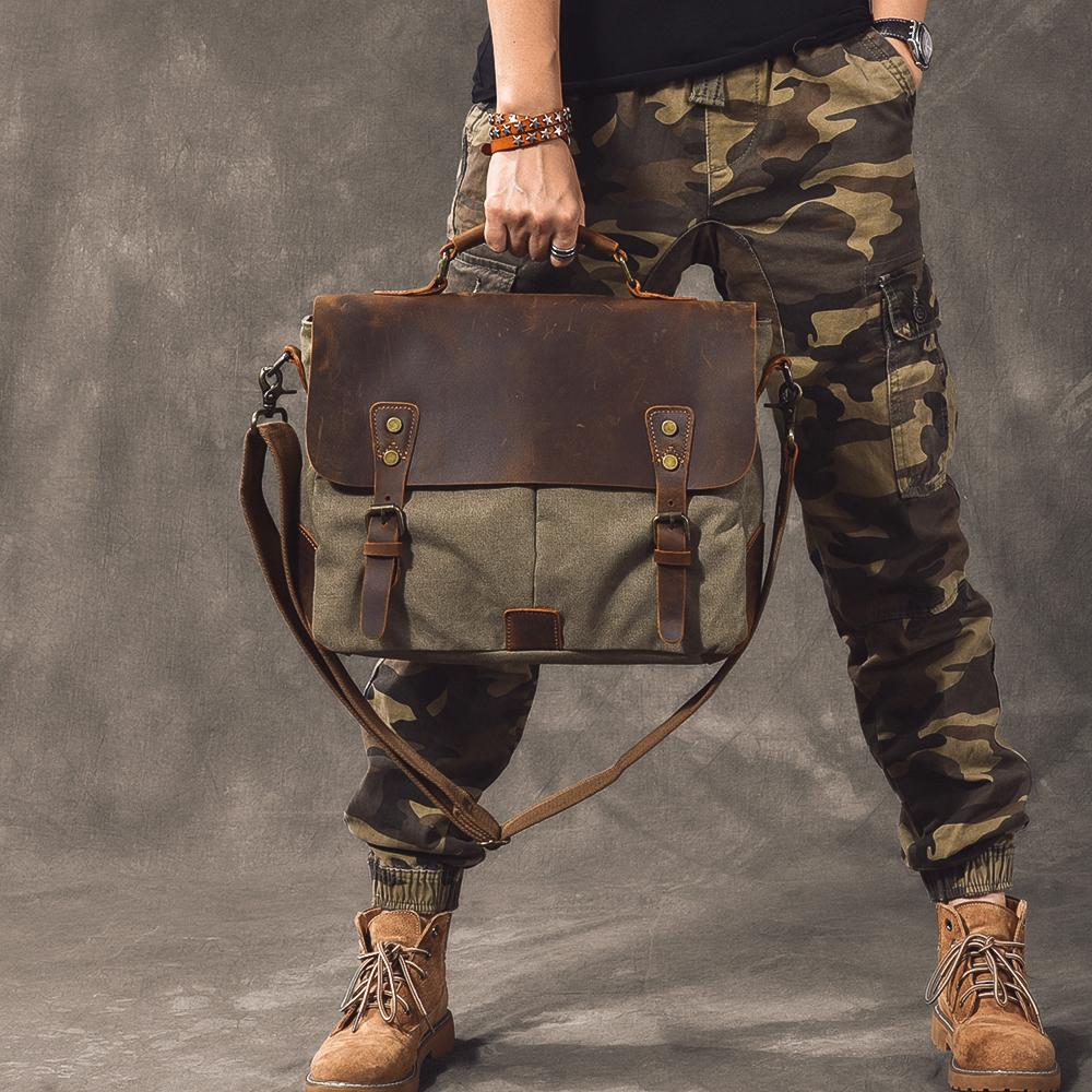 Style: Canvas Leather Mens Womens Green Briefcase Side Bag Brown Messenger Bag Shoulder Bag For Men
