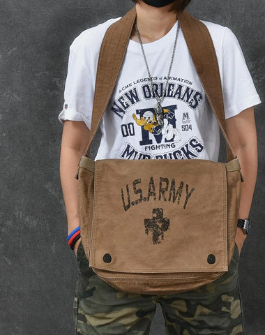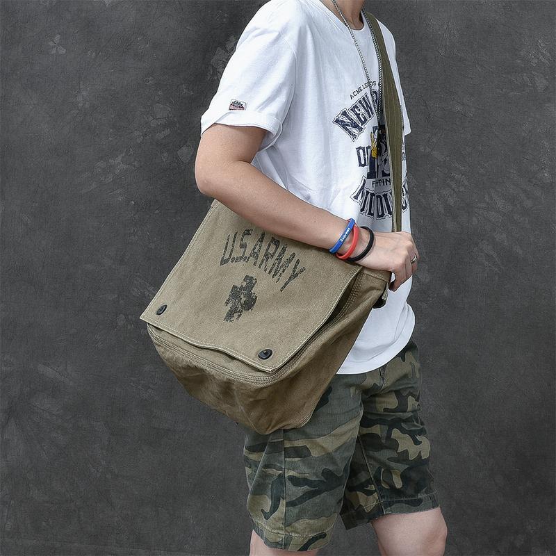 Design: Canvas Leather Mens Womens Large Brown Side Bag Army Green Messenger Bag Shoulder Bag For Men