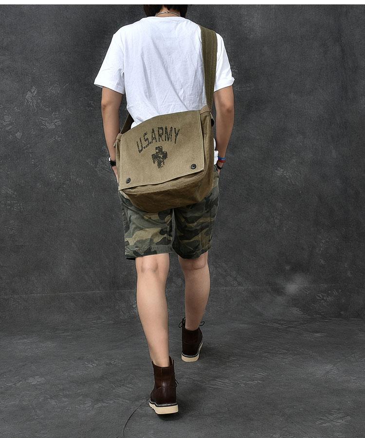 Style: Canvas Leather Mens Womens Large Brown Side Bag Army Green Messenger Bag Shoulder Bag For Men