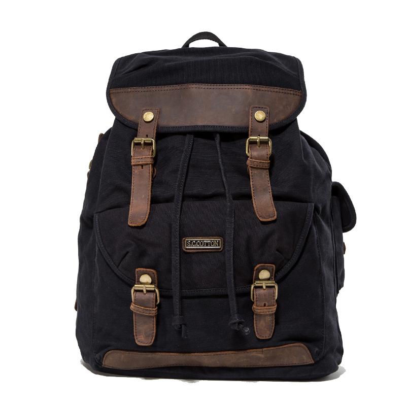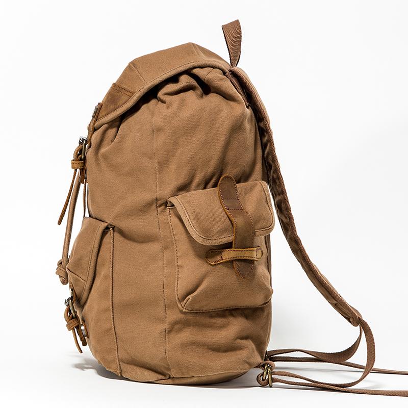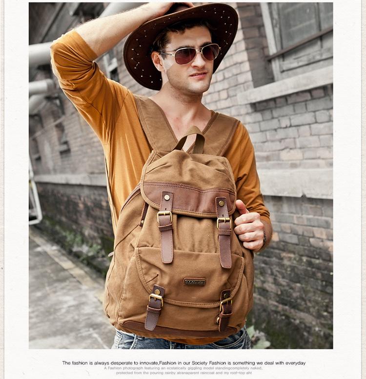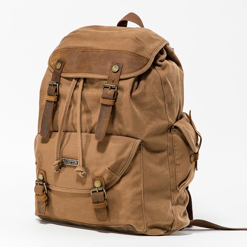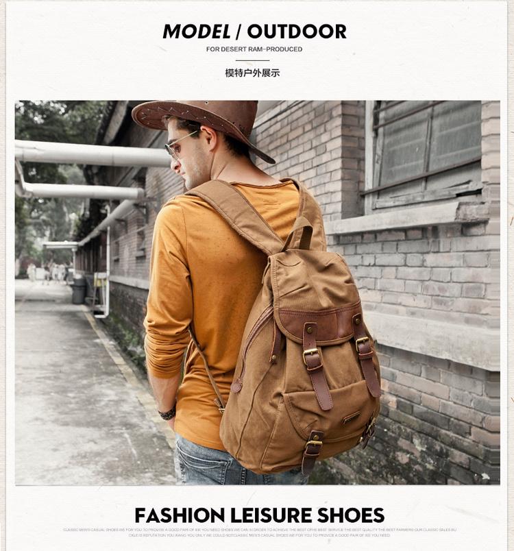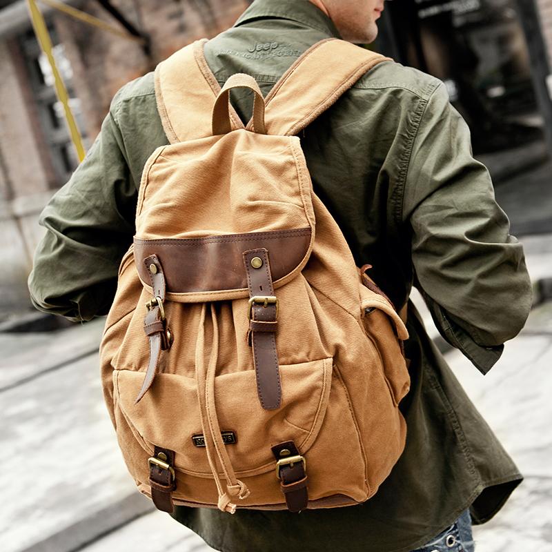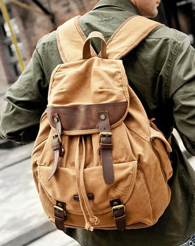 Canvas Leather Mens Women 16" Black Travel Backpack Khaki Computer Bag College Backpack for Men