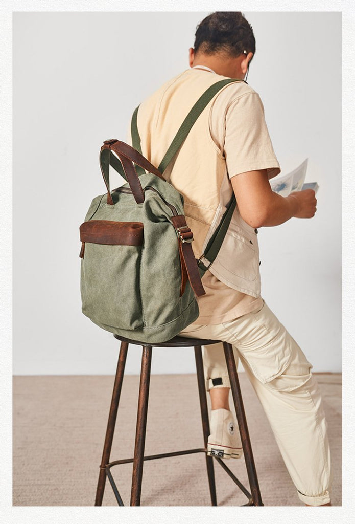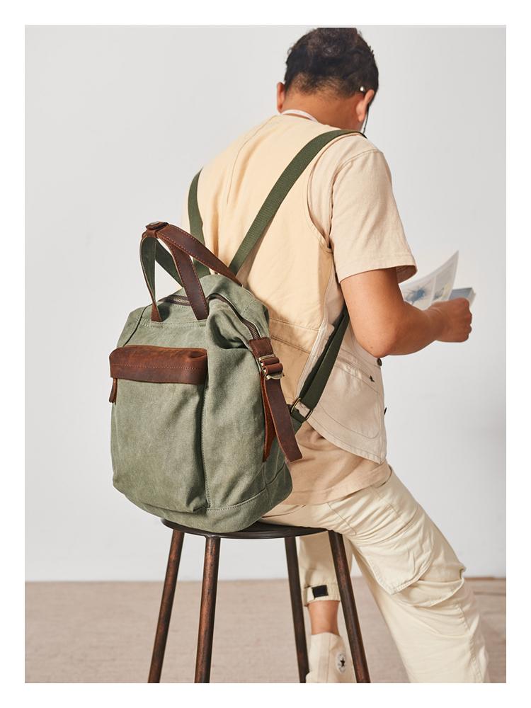 Style: Canvas Mens Cool Backpack 12 inches Canvas Blue Travel Bag Canvas Computer Bag for Men