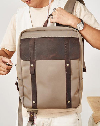 Design: Canvas Mens Cool Backpack Canvas Khaki Travel Bag Canvas Computer Bag for Men