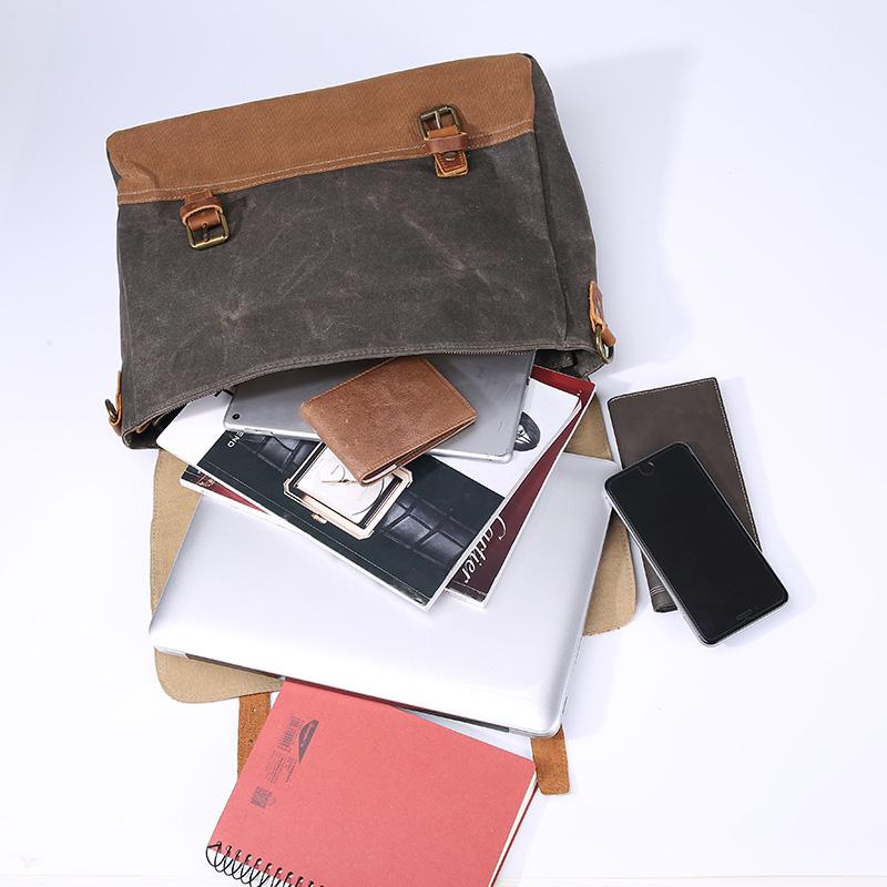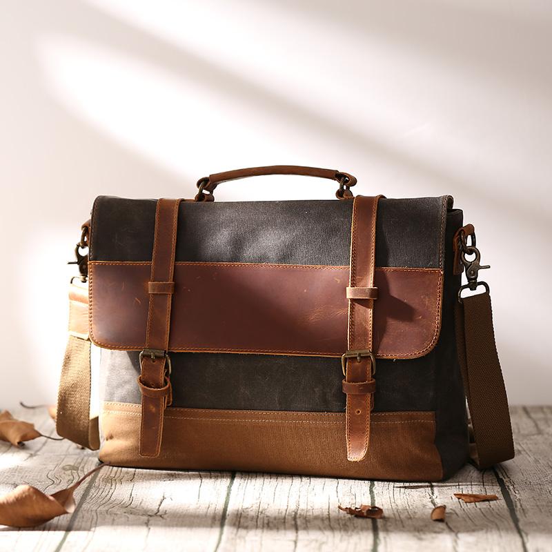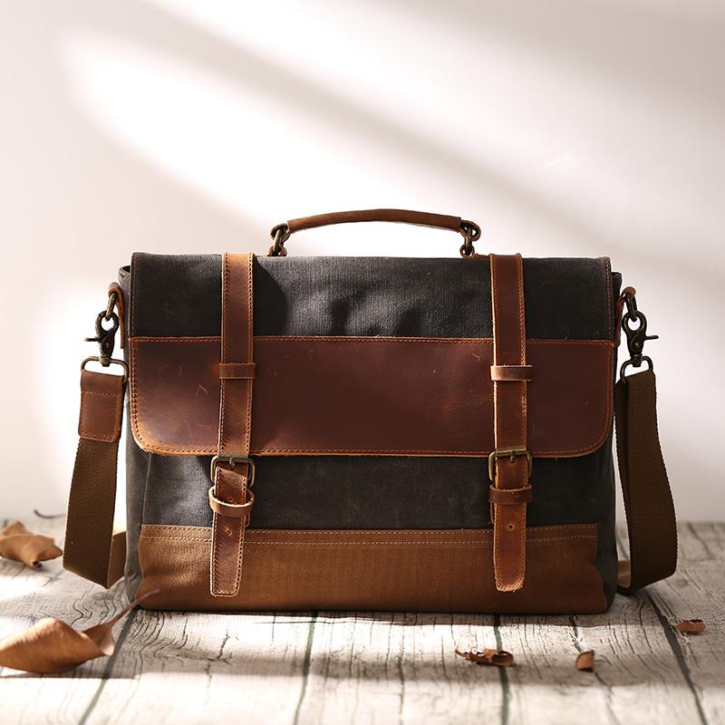 Style: Canvas Mens Shoulder Bag Gray Green Briefcase Postman Bag Messenger Bag for Men