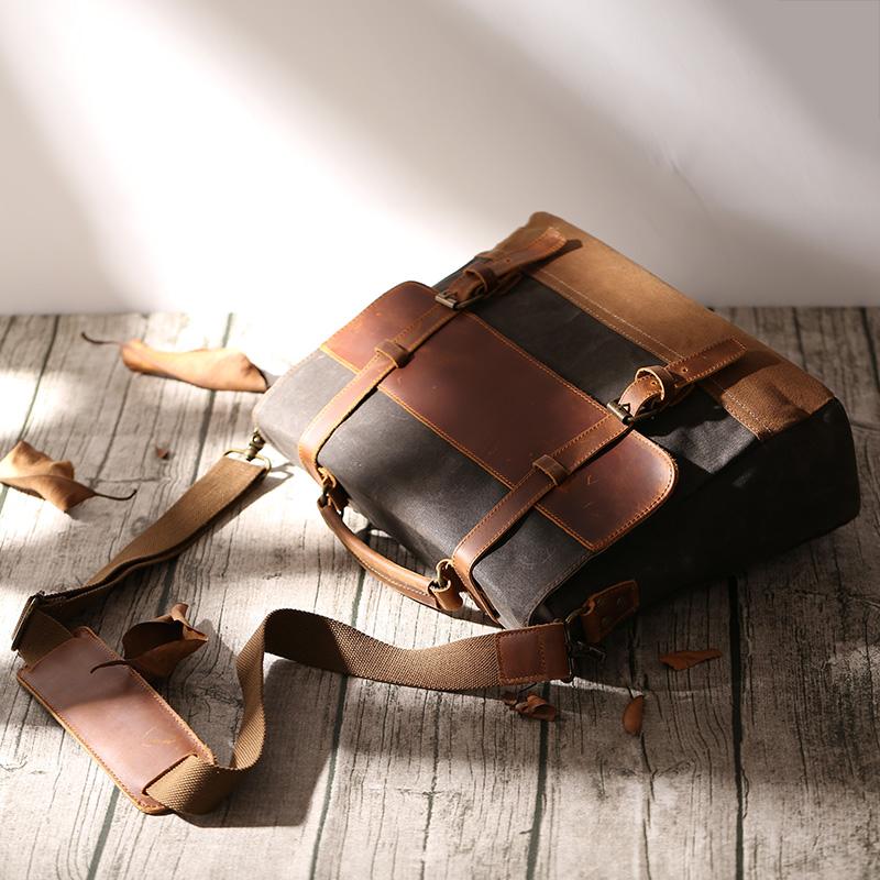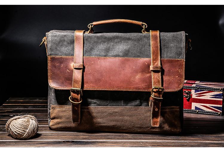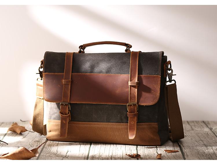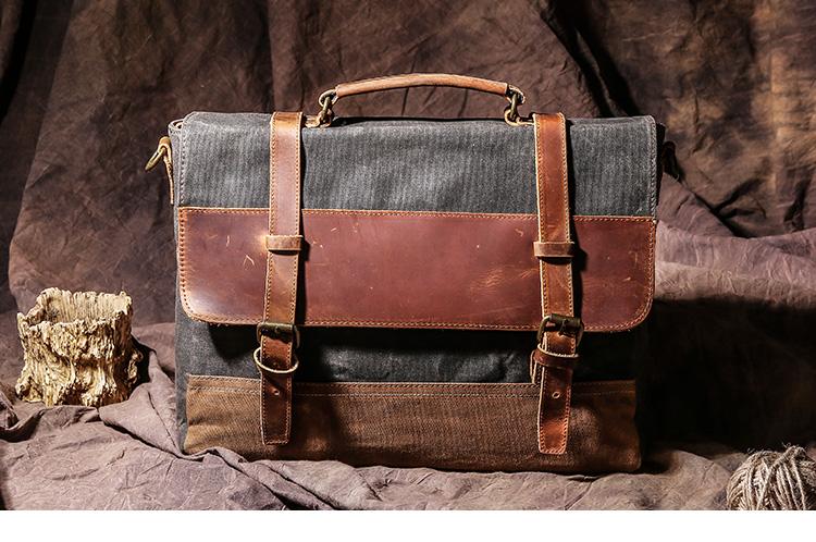 Design: Canvas Mens Shoulder Bag Gray Green Briefcase Postman Bag Messenger Bag for Men