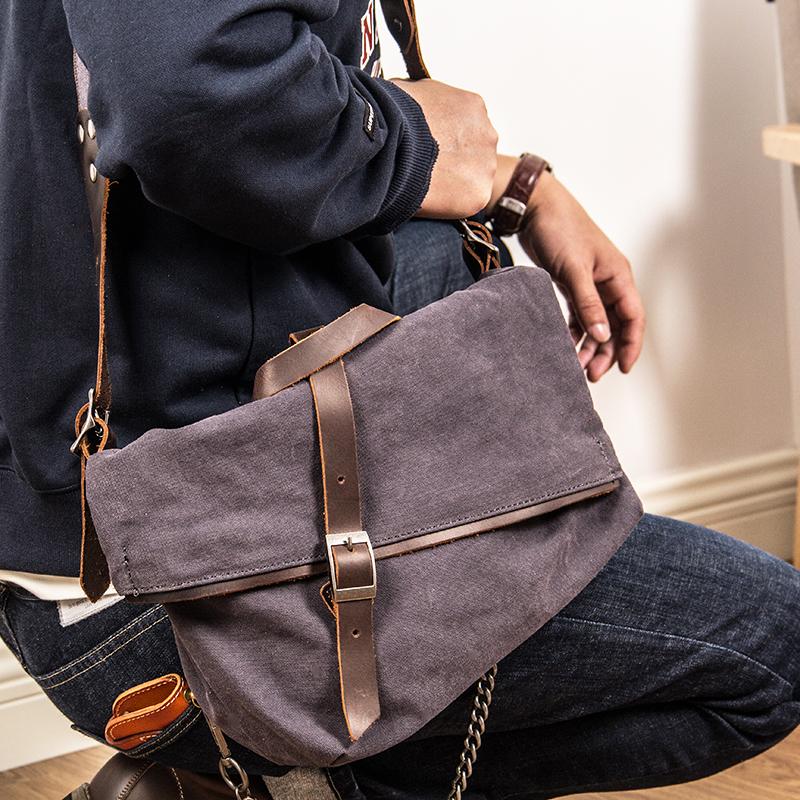Design: Canvas Mens Womens Casual Beige 12‘’ Courier Bag Side Bag Messenger Bag for Men