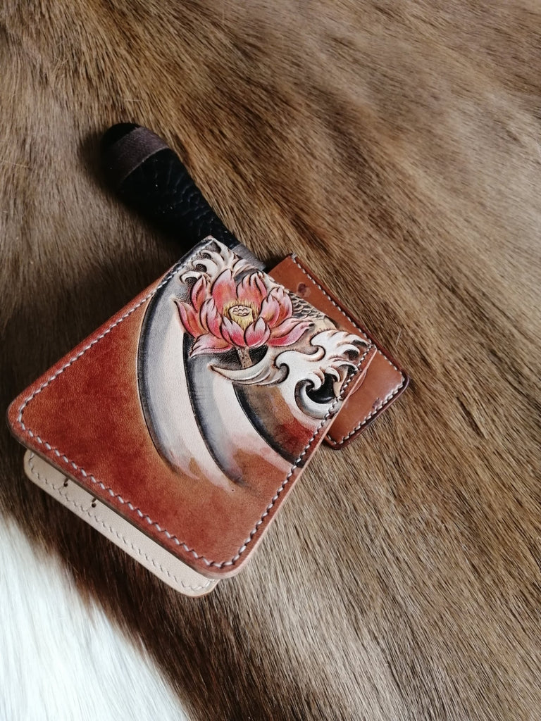 Style: Carp Tooled Leather Wallet Card Wallet with ID Window Koi ID Holder Wallet
