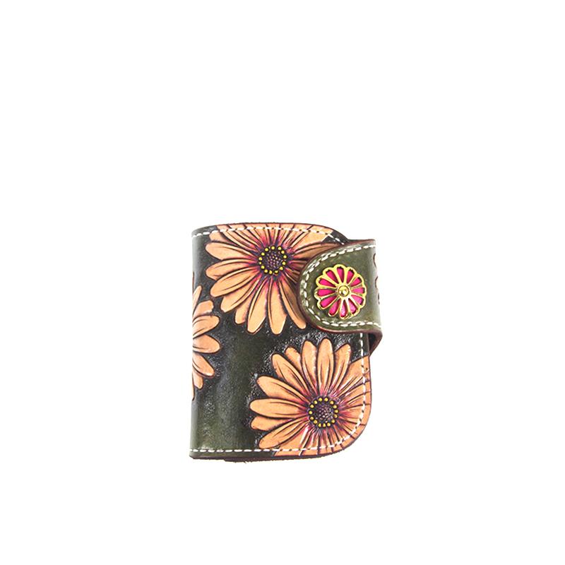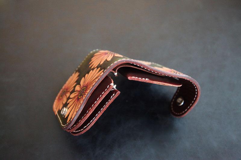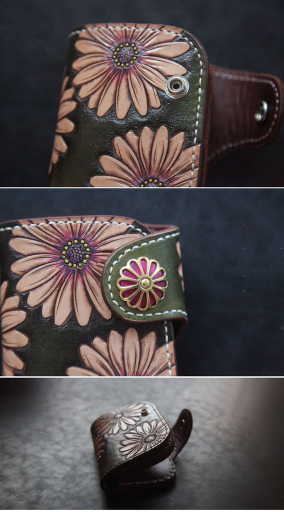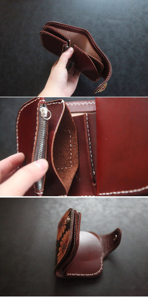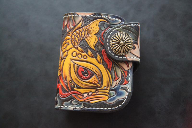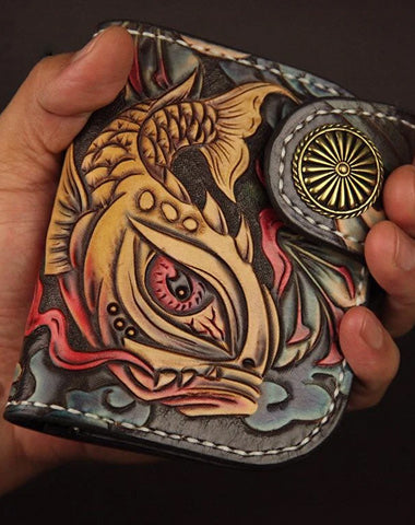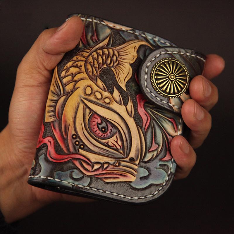 Design: Tooled Arowana Handmade Leather Mens billfold Biker Wallets BIfold SMall Wallet For Men