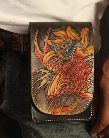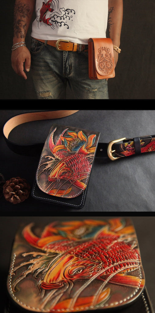 Design: Tooled Handmade Leather Mens Belt Pouch Waist Bag Belt Phone Bag Mobile Bag For Men