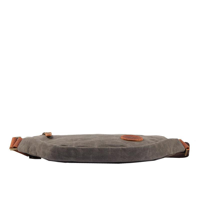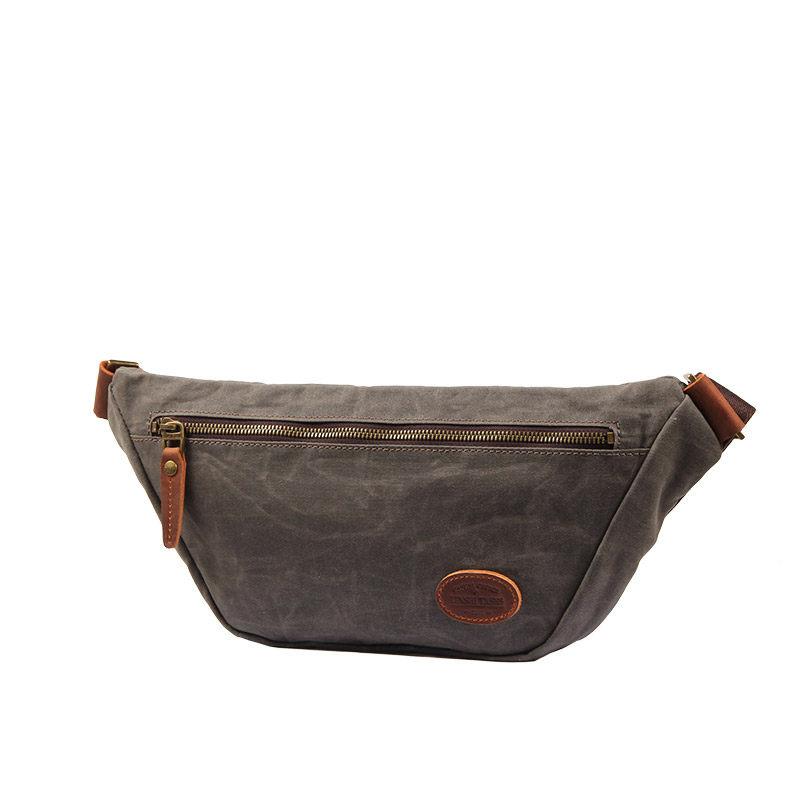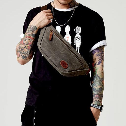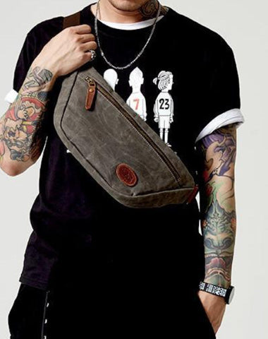 Design: Blue Waxed Canvas Leather Fanny Pack Men's Chest Bag Sling Hip Bag Waist Bag For Men