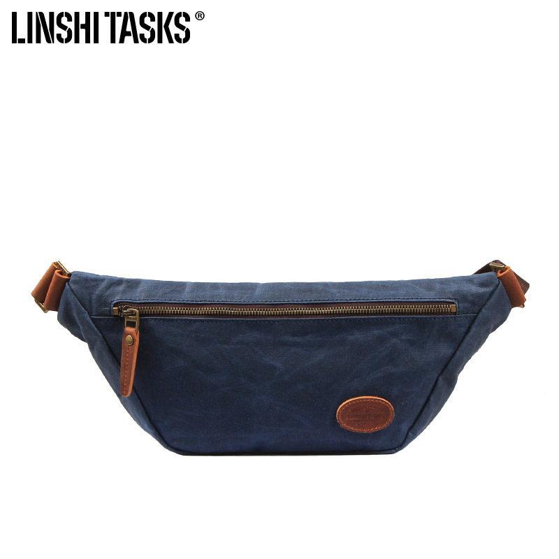 Style: Blue Waxed Canvas Leather Fanny Pack Men's Chest Bag Sling Hip Bag Waist Bag For Men