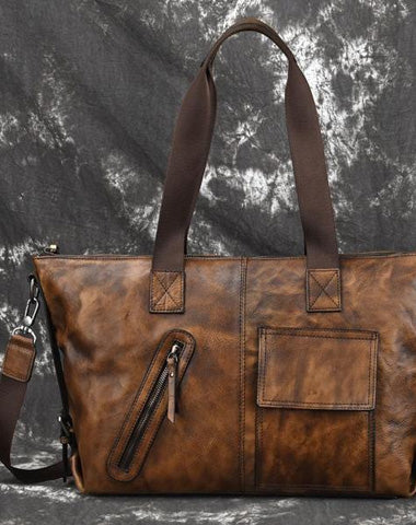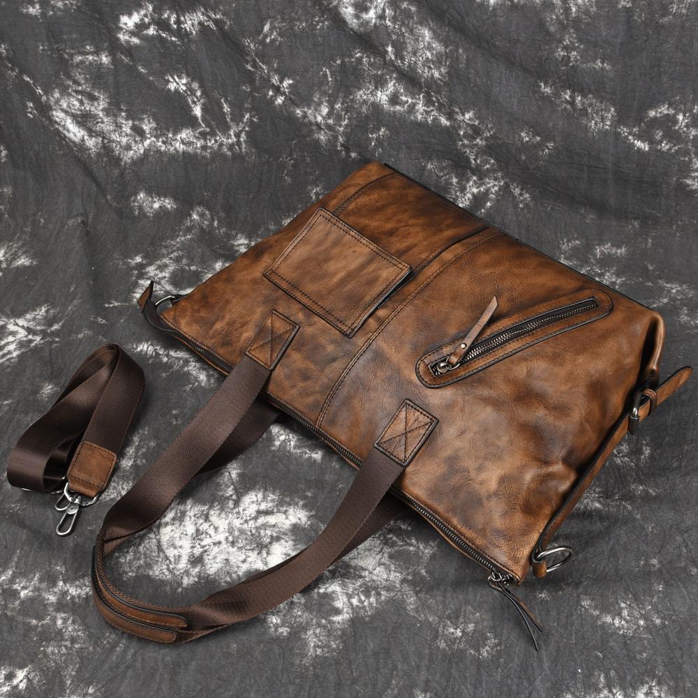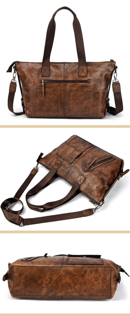 Design: Casual Black Brown Leather Men Handbag Overnight Bags Travel Bags Weekender Bags For MenOverview: