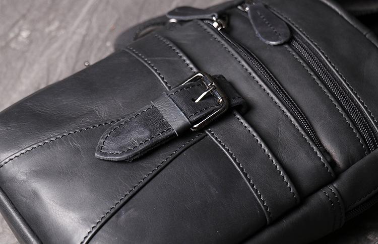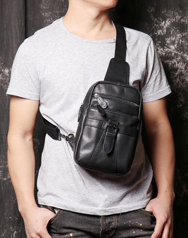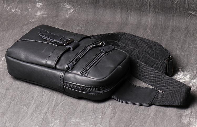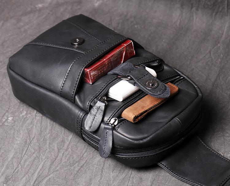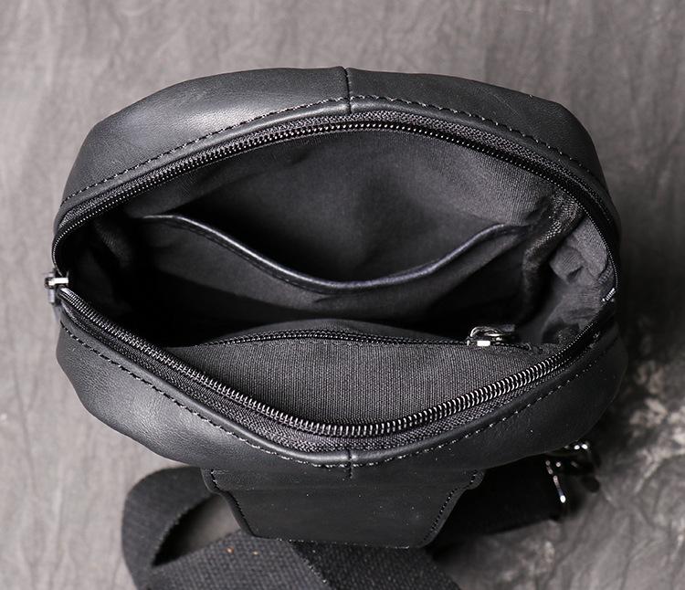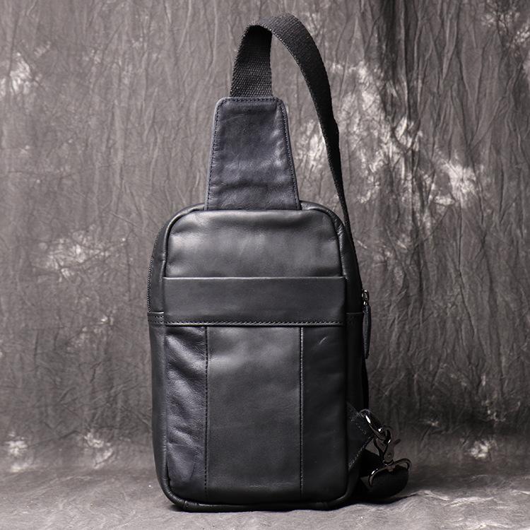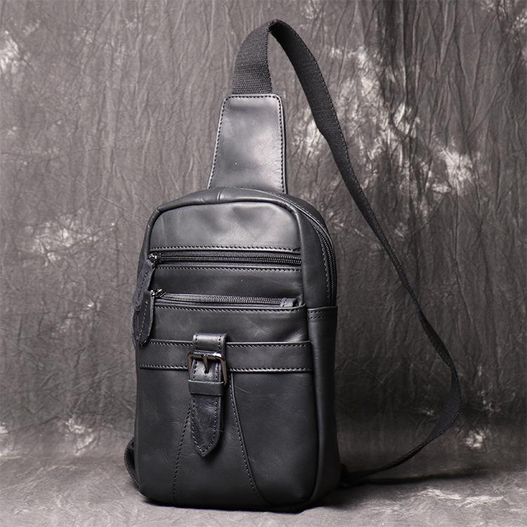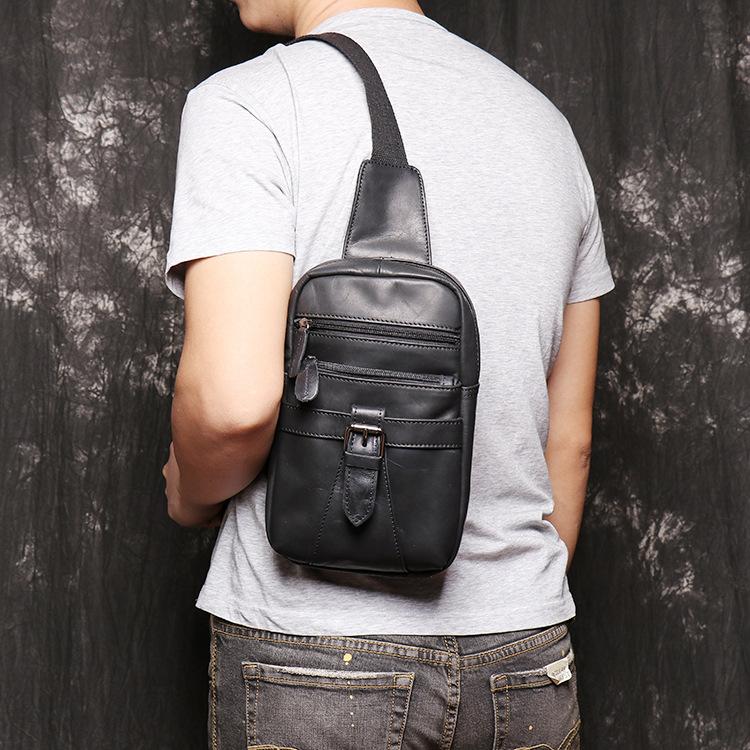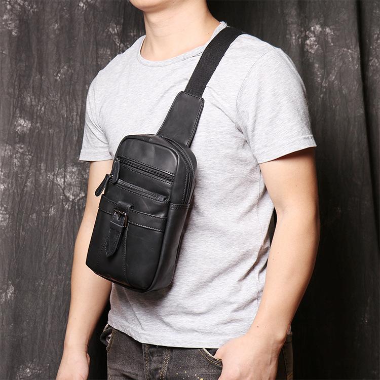 Style: Casual Black Leather Backpack Men's 8-inch Sling Bag Chest Bag One shoulder Backpack Sports Bag For Men