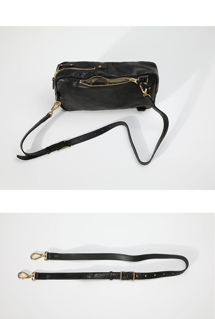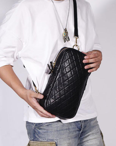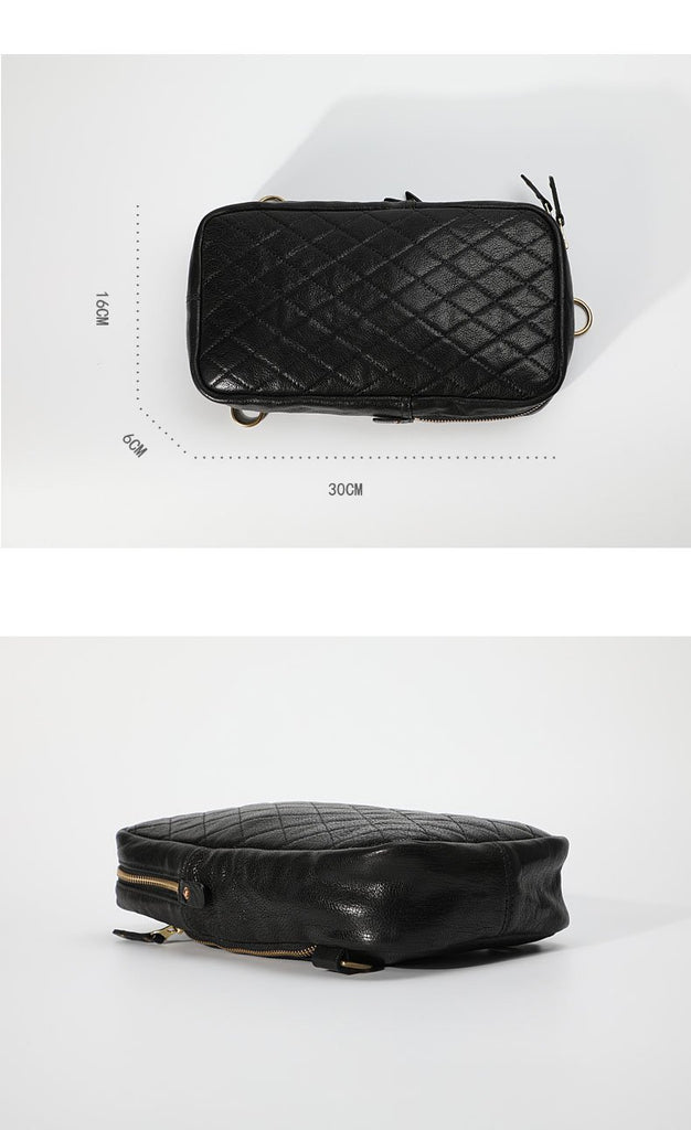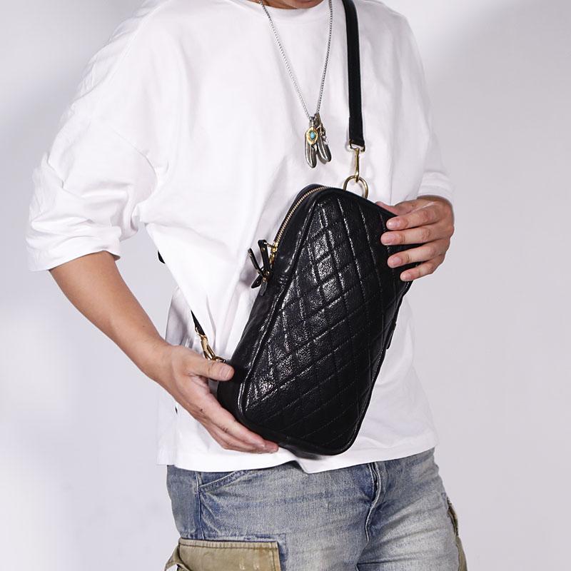 Design: FASHION BLACK LEATHER MEN'S 10 INCHES SLING BAG ONE SHOULDER MESSENGER BAG CHEST BAG DIAGONAL BAG FOR MENOverview: