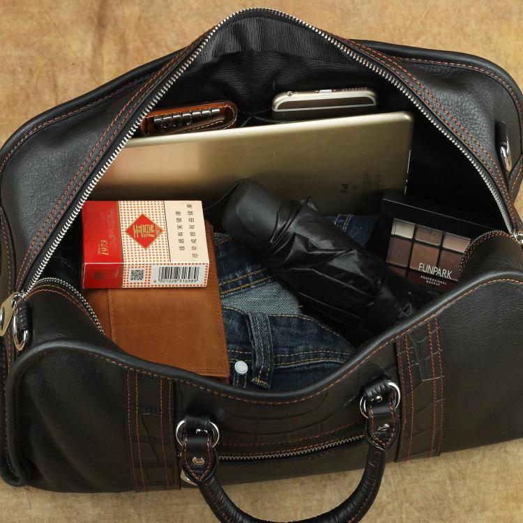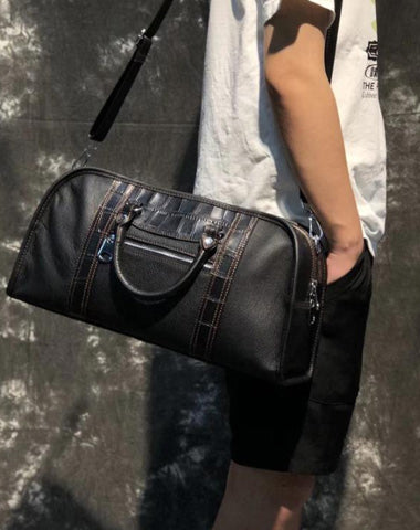 Design: Casual Black Leather Men's 13 inches Overnight Bag Travel Bag Luggage Weekender Bag For MenOverview: