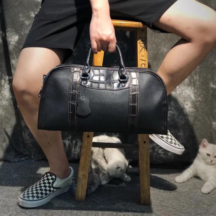 Design: Casual Black Leather Men's 13 inches Overnight Bag Travel Bag Luggage Weekender Bag For Men