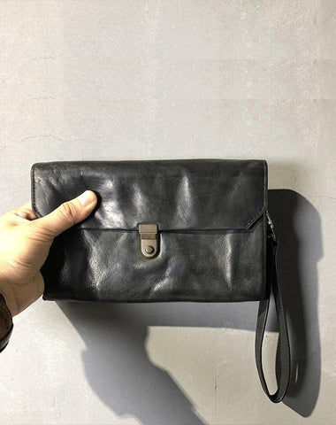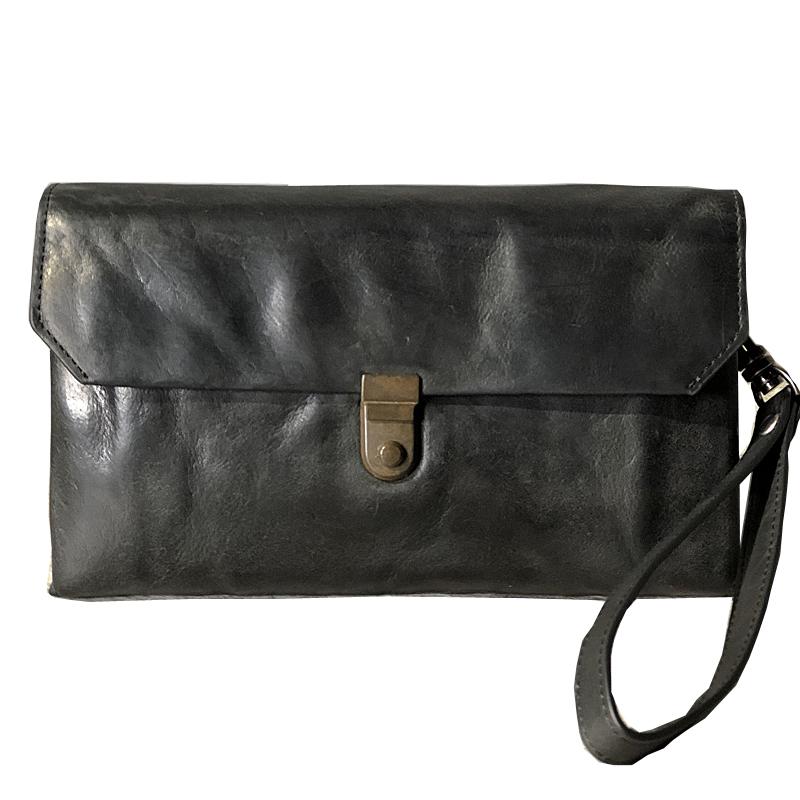 Design: CASUAL BLACK LEATHER MEN'S 8 INCHES MIni Horizontal Side Bag MESSENGER BAG BLACK PHONE Courier BAG FOR MEN