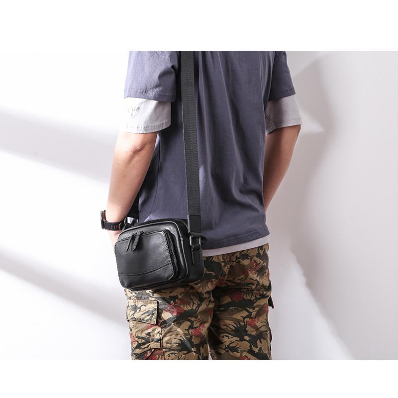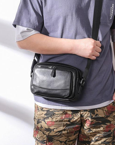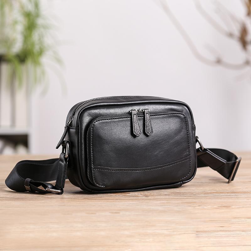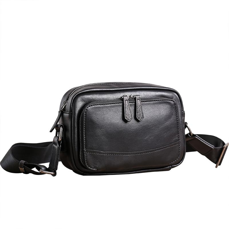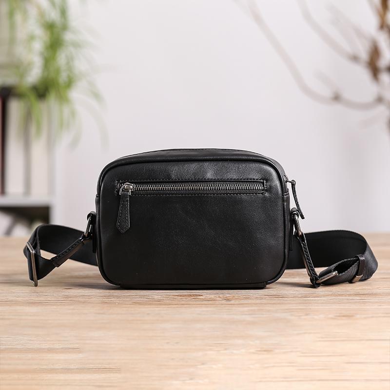 Style: Casual Black Leather MENS 8 inches Side Bag Black Messenger Bag Courier Bag For Men