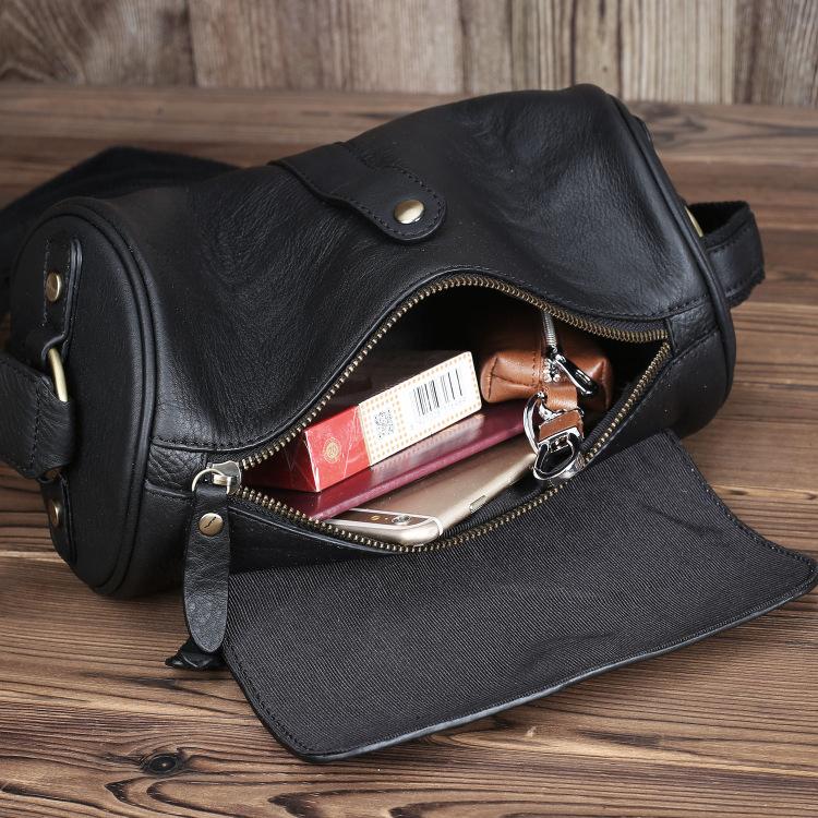 Design: Casual Black Leather Mens Barrel Shoulder Bag Side Bag Messenger Bag For MenOverview: