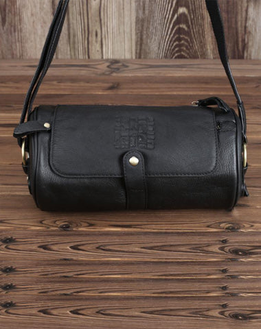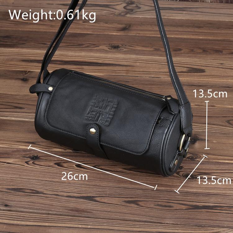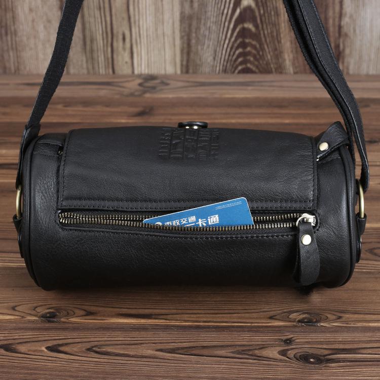 Design: Casual Black Leather Mens Barrel Shoulder Bag Side Bag Messenger Bag For Men