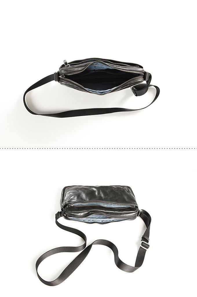 Design: Casual Black Leather Mens Cool Shoulder Bag Messenger Bag Large Crrossbody Bag for Men