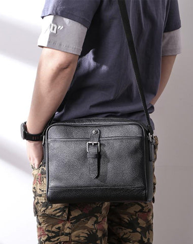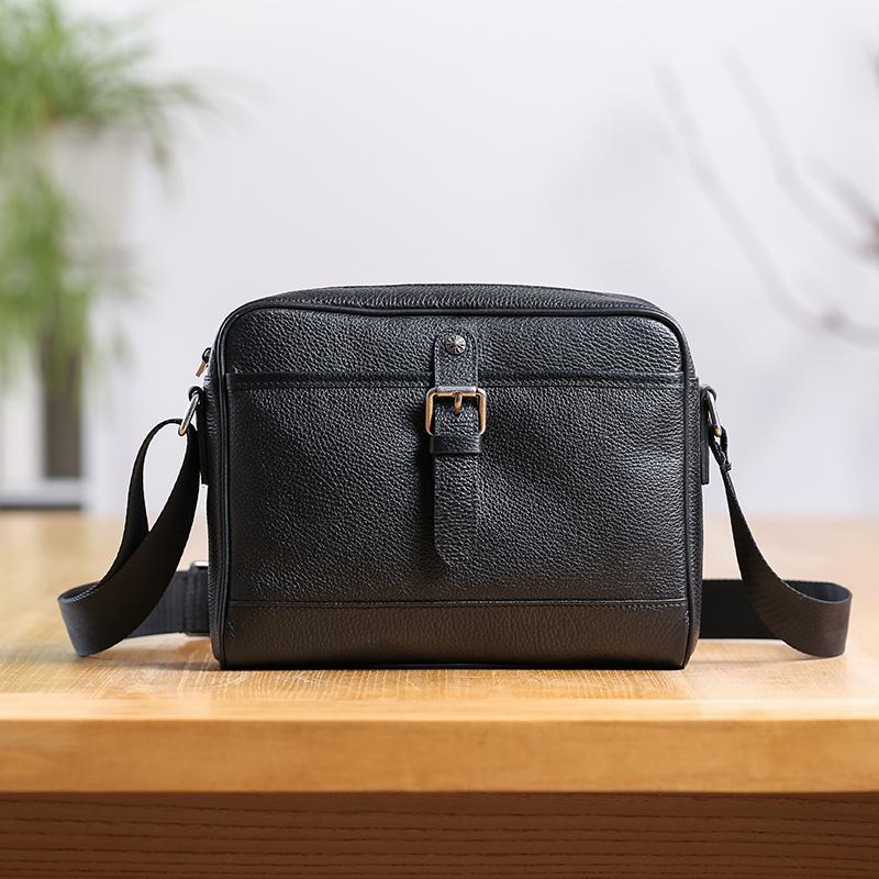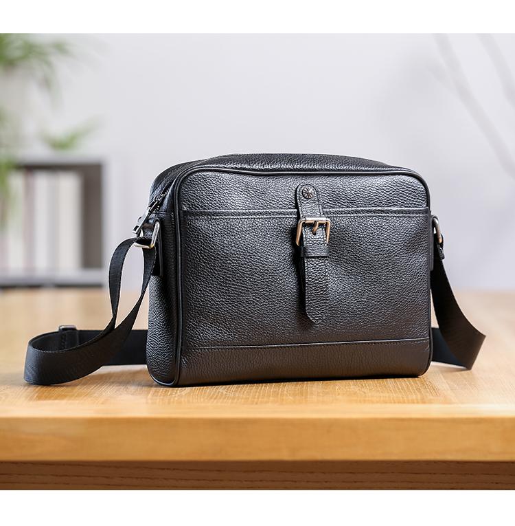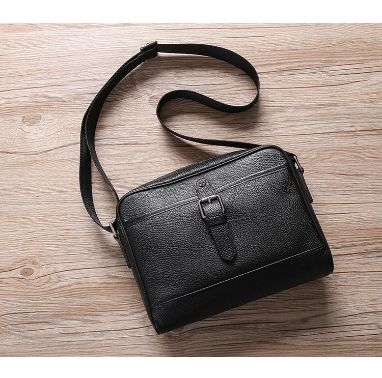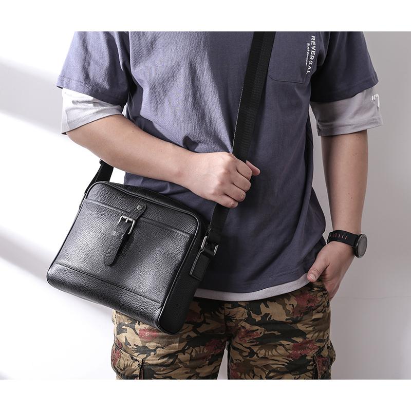 Style: Casual Black Leather MENS Horizontal Side Bag Black Messenger Bag Courier Bag For Men