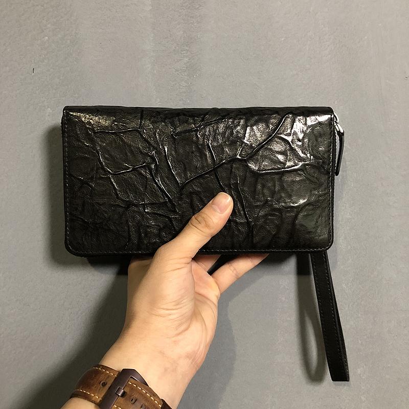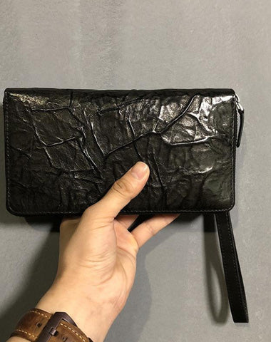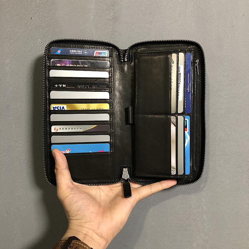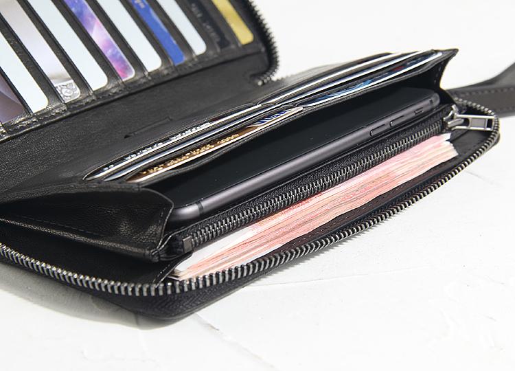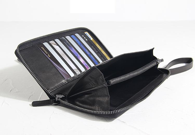 Design: CASUAL BLACK LEATHER MEN'S Long Wallet Clutch Wallet BLACK Wristlet Wallets FOR MEN