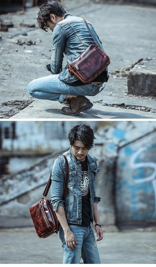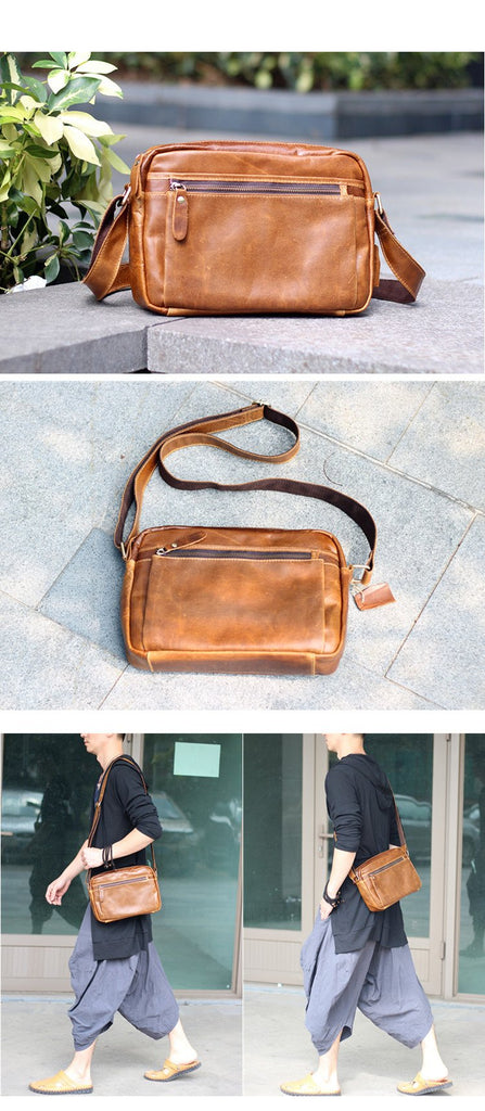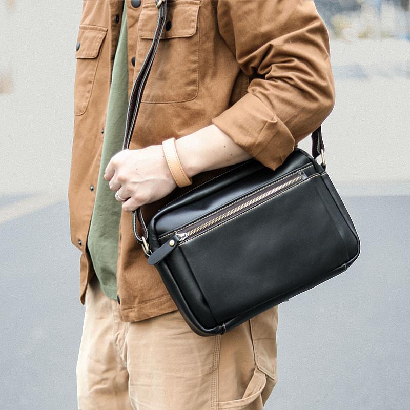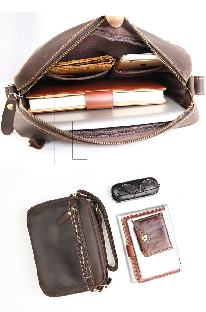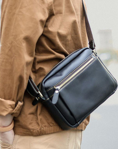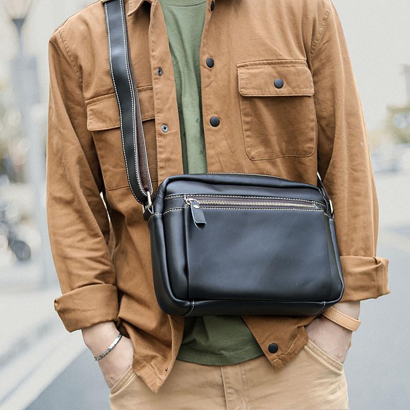 Design: Casual Black Leather Mens Small Courier Bags Blue Messenger Bags Brown Postman Bags For Men