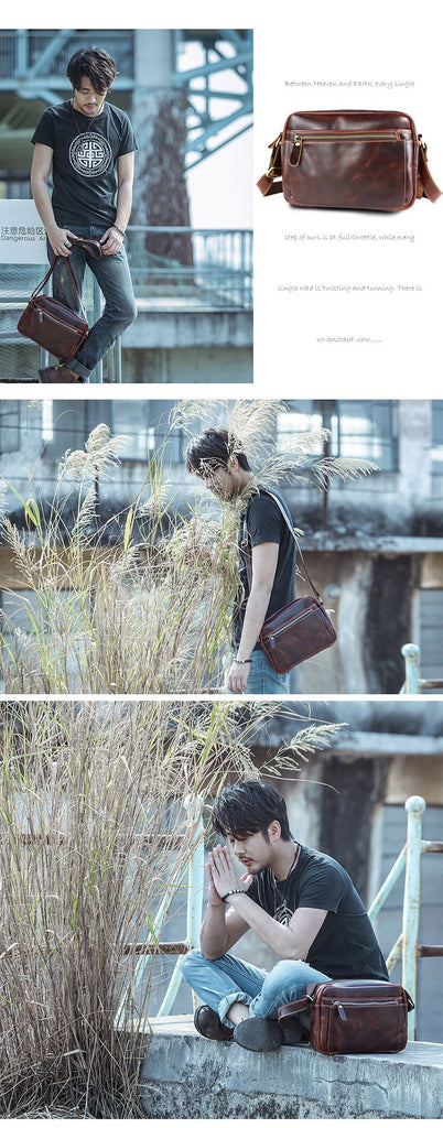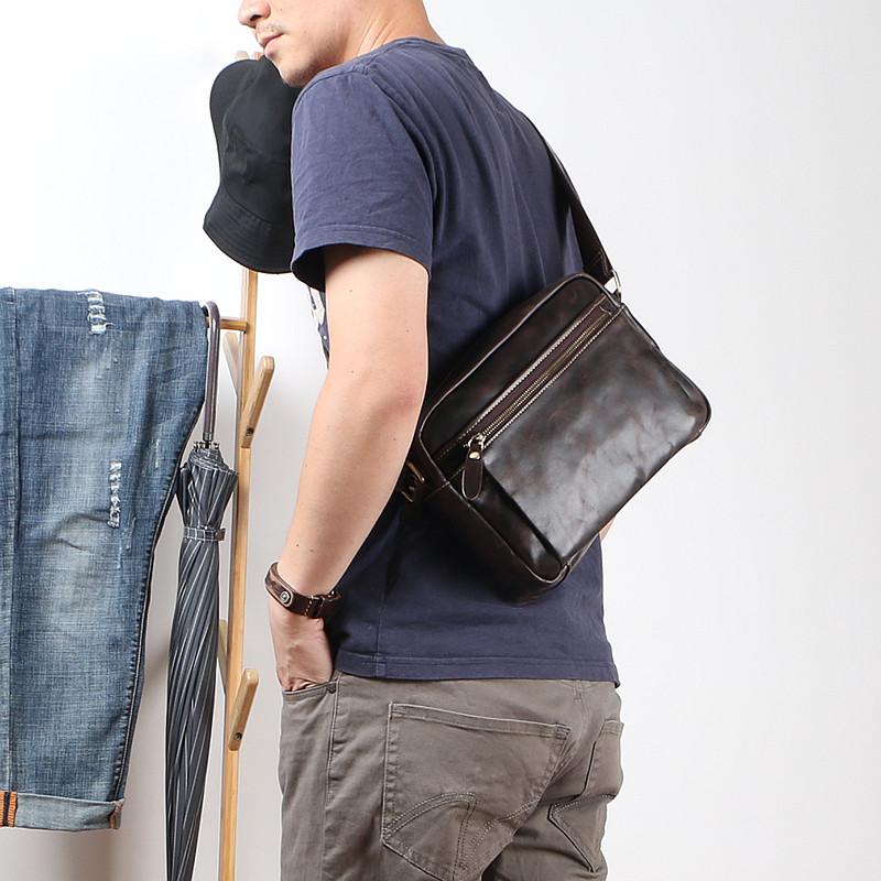Style: Casual Black Leather Mens Small Courier Bags Blue Messenger Bags Brown Postman Bags For Men