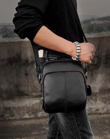Style: Casual Black LEATHER MENS SMALL VERTICAL SHOULDER BAG SIDE BAG COURIER BAG MESSENGER BAG FOR MEN