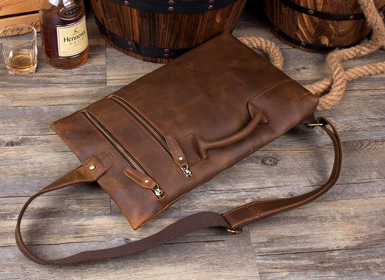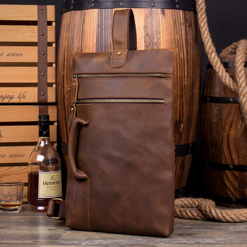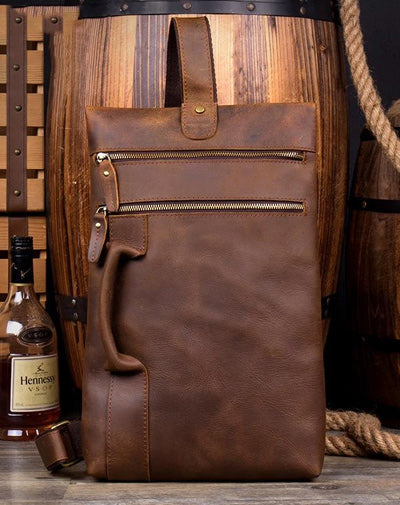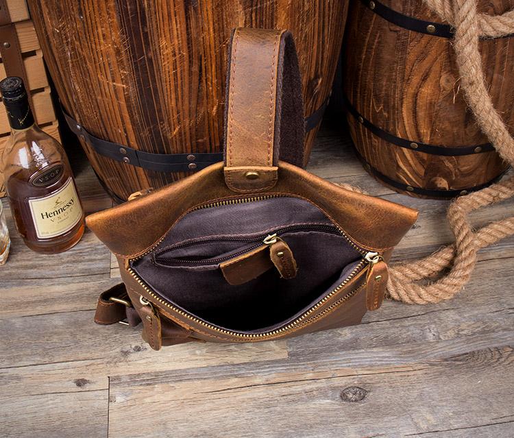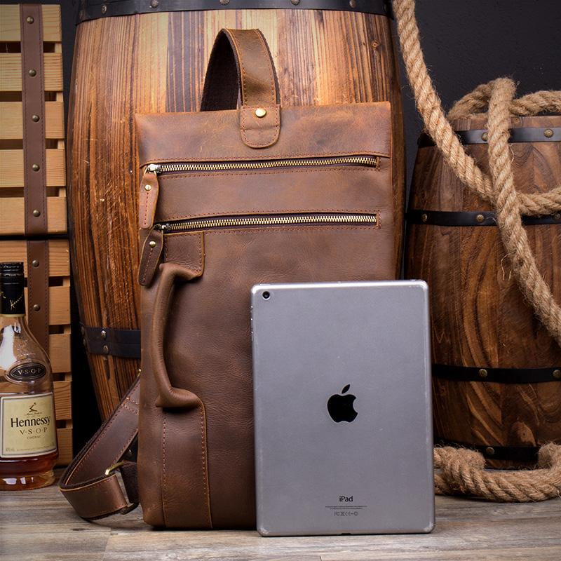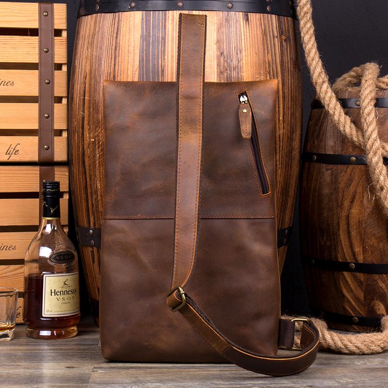 Design: Casual Brown Leather Mens 10 inches Sling Pack Sling Bags Chest Bag One Shoulder Backpack for Men