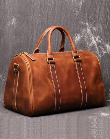 Design: Casual Brown Leather Men's 12 inches Overnight Bag Travel Bag Luggage Weekender Bag For MenOverview:
