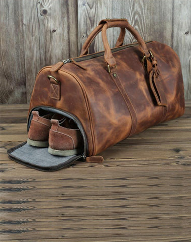 Design: Casual Brown Leather Men's 14 inches Overnight Bag Travel Bag Luggage Weekender Bag For MenOverview: